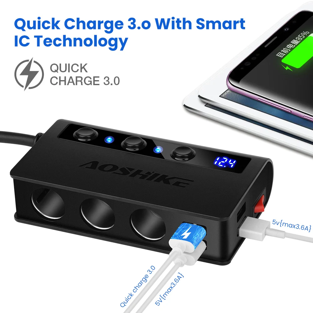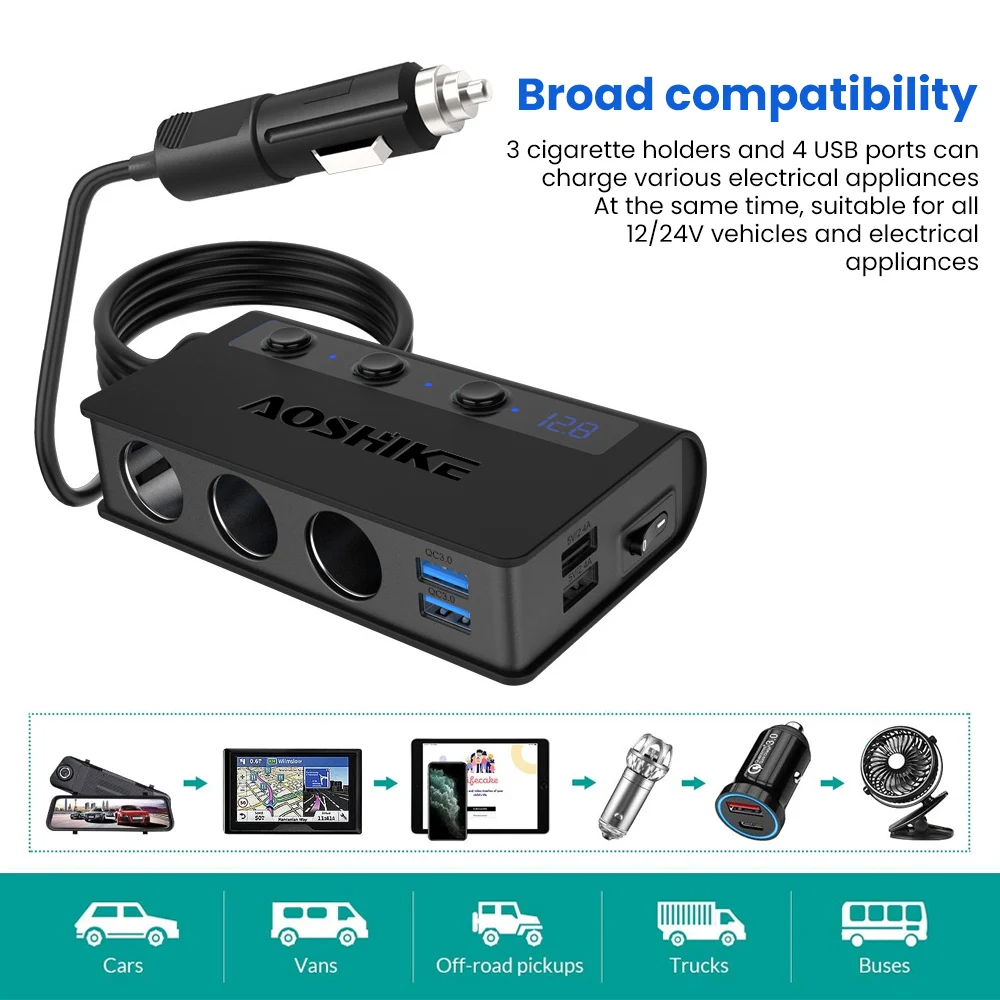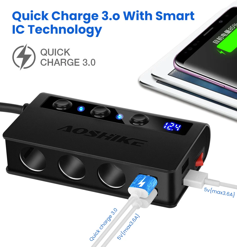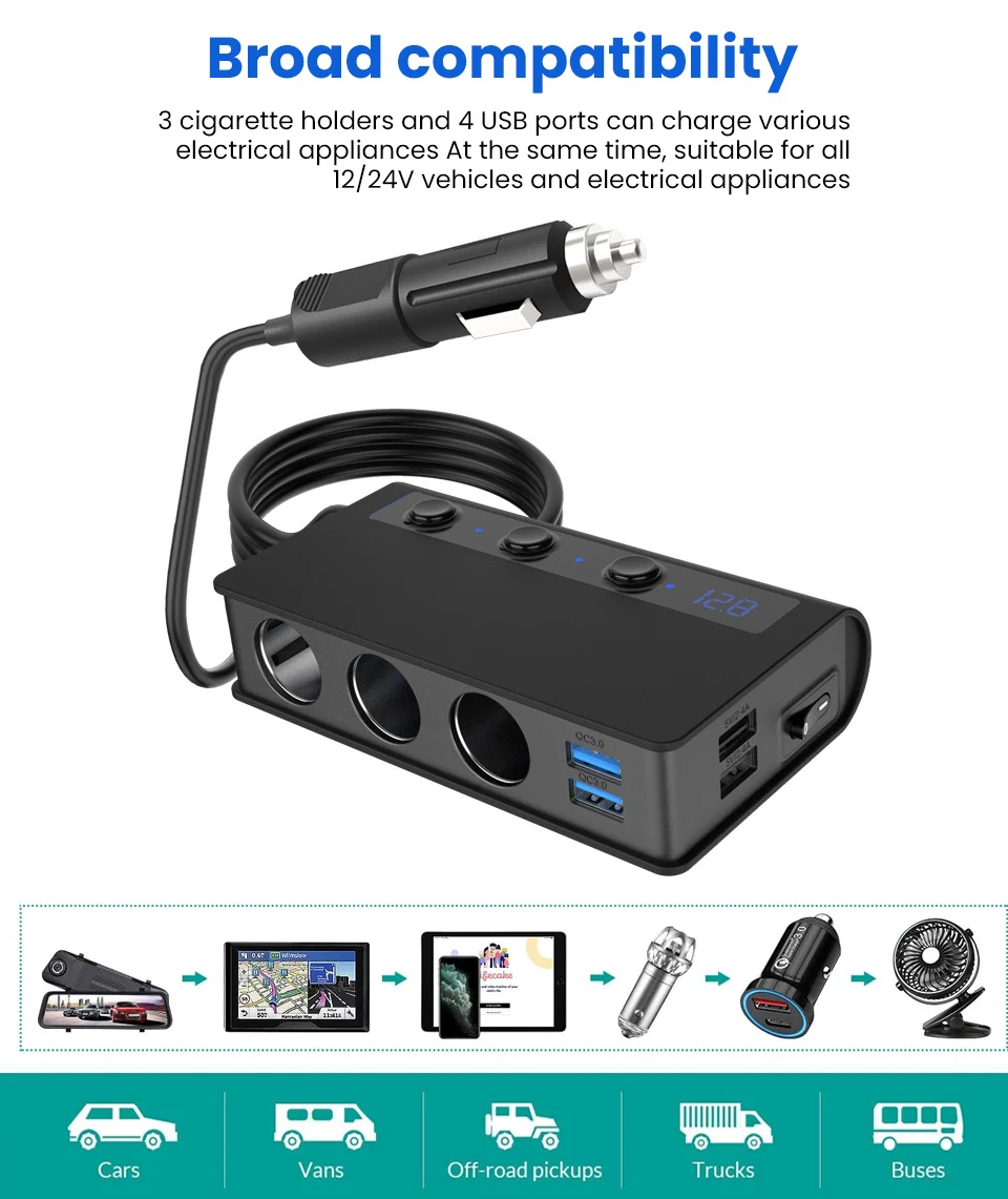 1. С отличным дизайном и хорошим качеством, этот многофункциональный сплиттер питания 3 в 1 предназначен для всех автомобилей 12 В/24 В и может удовлетворить ваши потребности в дороге