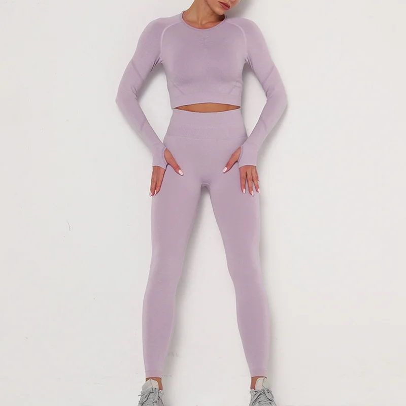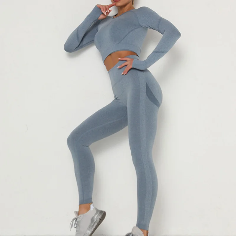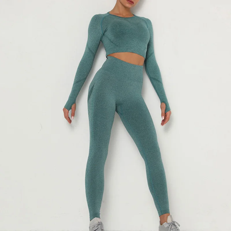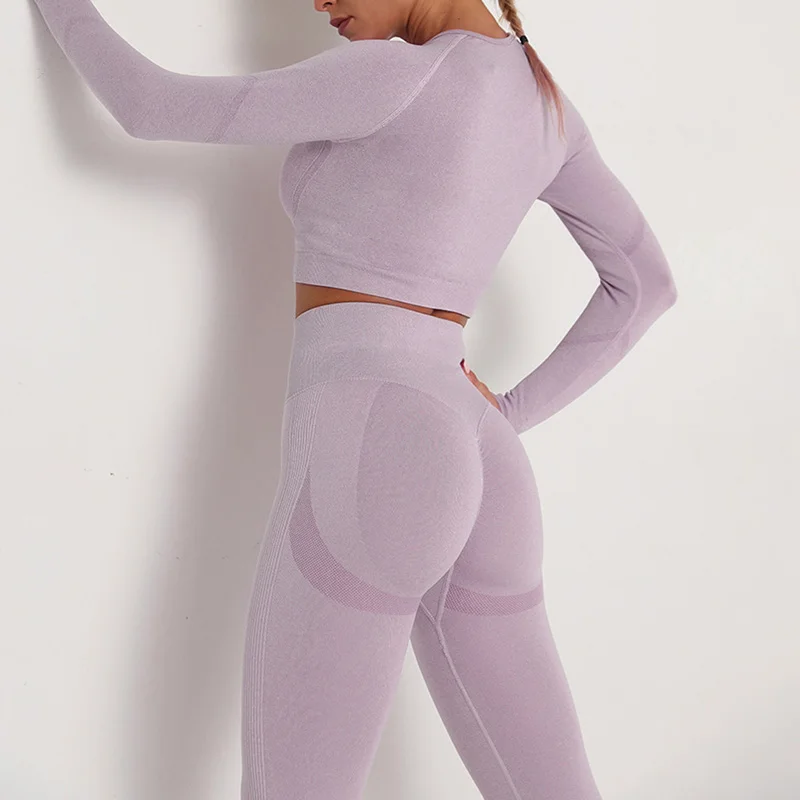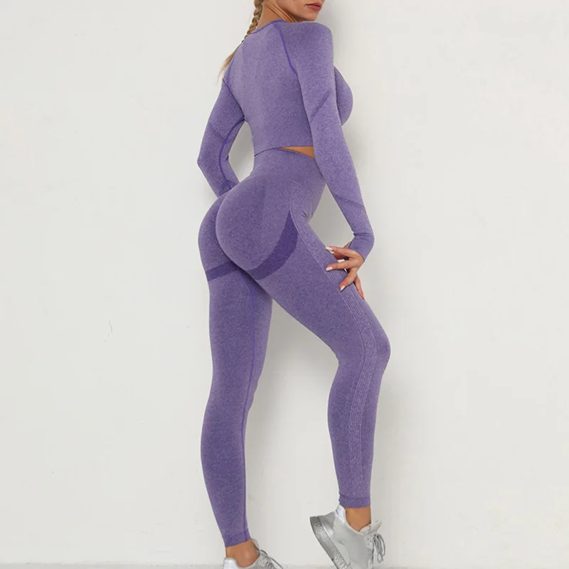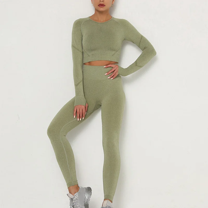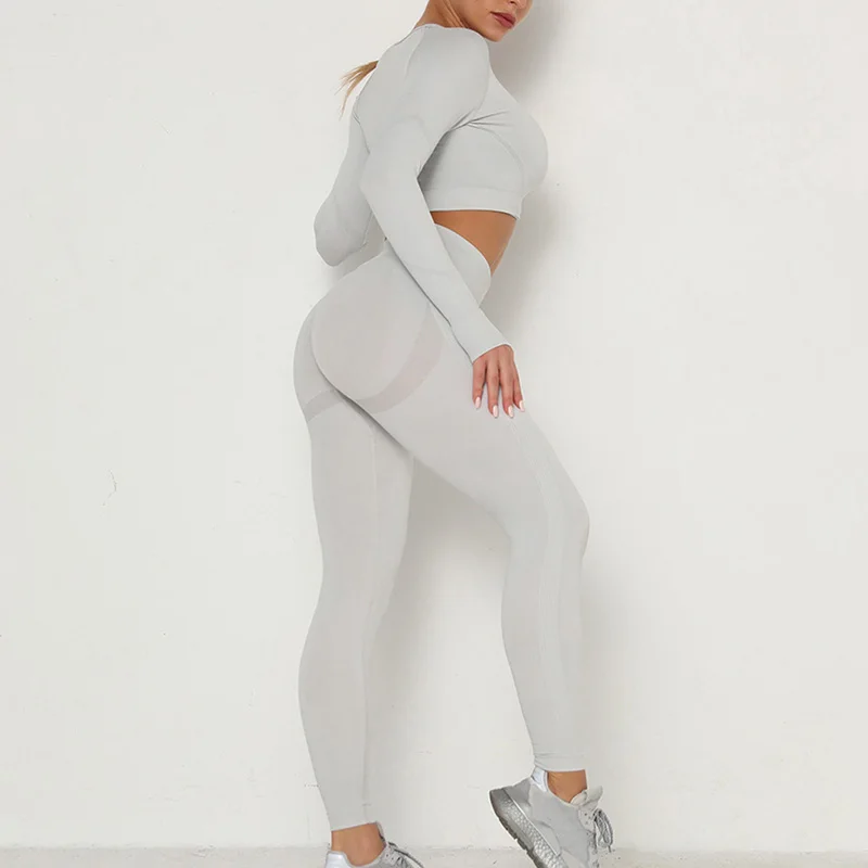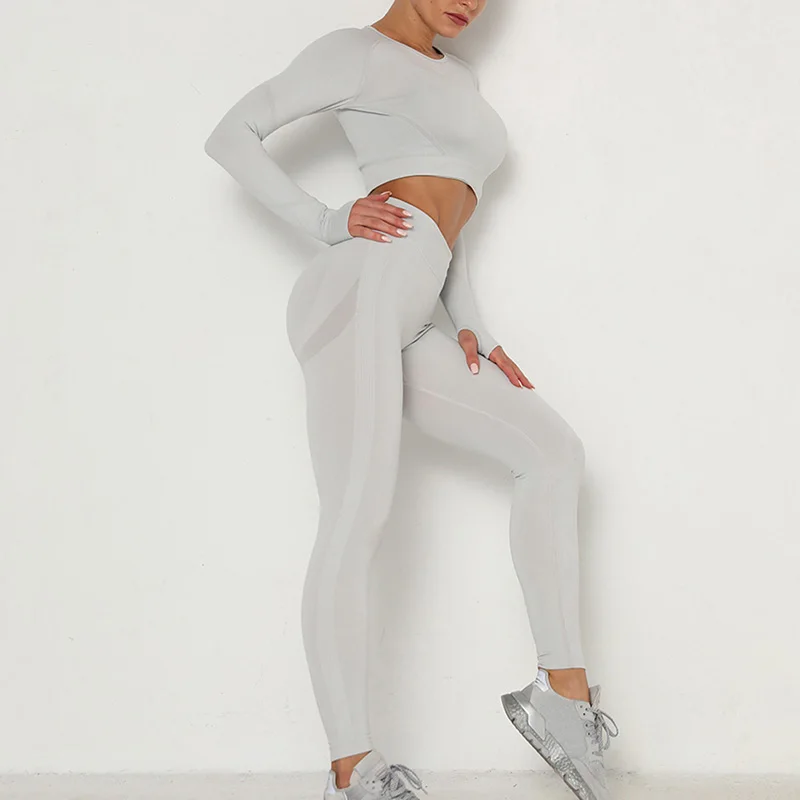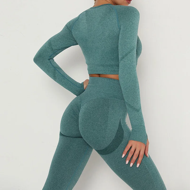 Новинка, женские бесшовные сексуальные спортивные костюмы, комплект для йоги, одежда для фитнеса, леггинсы с высокой талией, спортивный костюм с длинным рукавом, одежда для активного отдыха