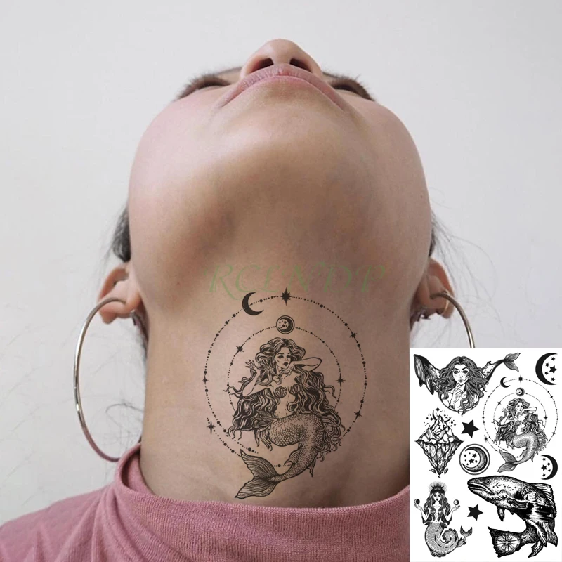 Водостойкая Временная тату-наклейка русалка сексуальная девушка Старый Школьный КИТ Звезда Луна Гора флэш-тату искусственная тату для мужчин женщин мужчин