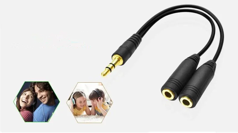 Сплиттер для наушников, 3,5 мм Удлинительный кабель аудио стерео Y сплиттер (Hi-Fi звук), 3,5 мм штекер на 2 порта 3,5 мм Женский сплиттер