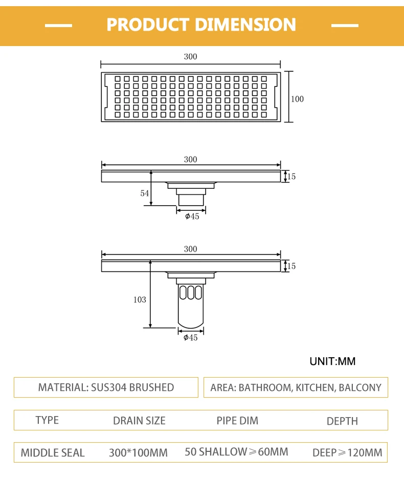 304 нержавеющая сталь 30 см плитка вставка прямоугольная линейный анти-запах трап ванная комната оборудование Невидимый душ Трап