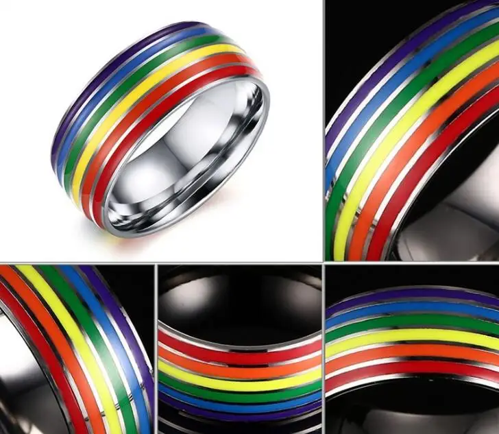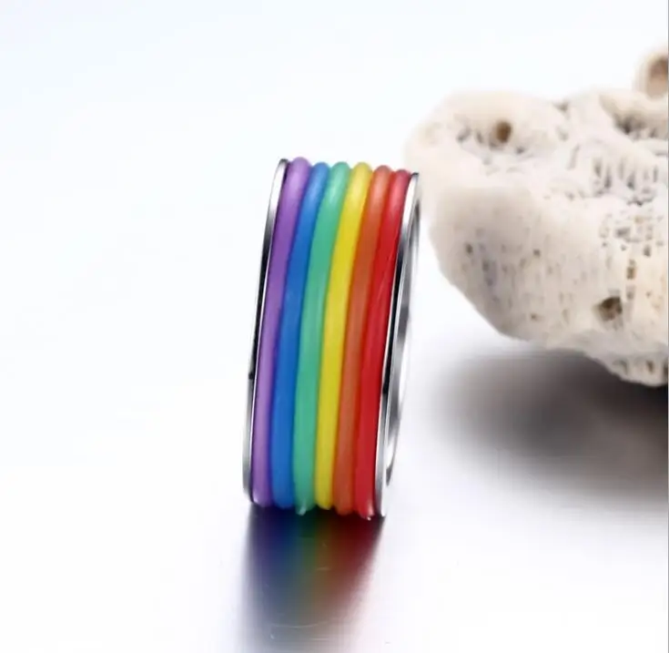 Модное Стильное мужское и женское Радужное красочное ЛГБТ-Кольцо из нержавеющей стали обручальное кольцо Lebian геев