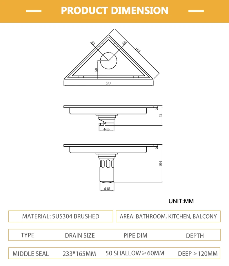 Треугольная кафельная вставка скрытого типа, решетки для пола, Слив для душа из нержавеющей стали 304, для балкона уголок ванной, дезодорированный Слив для пола