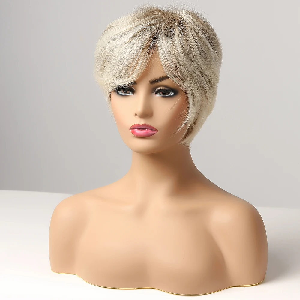 Парики с челкой для женщин ALAN EATON Ombre, коричневые, Платиновые, светлые, серые, пепельно-белые, с короткими прямыми пухлыми натуральными синтетическими волосами