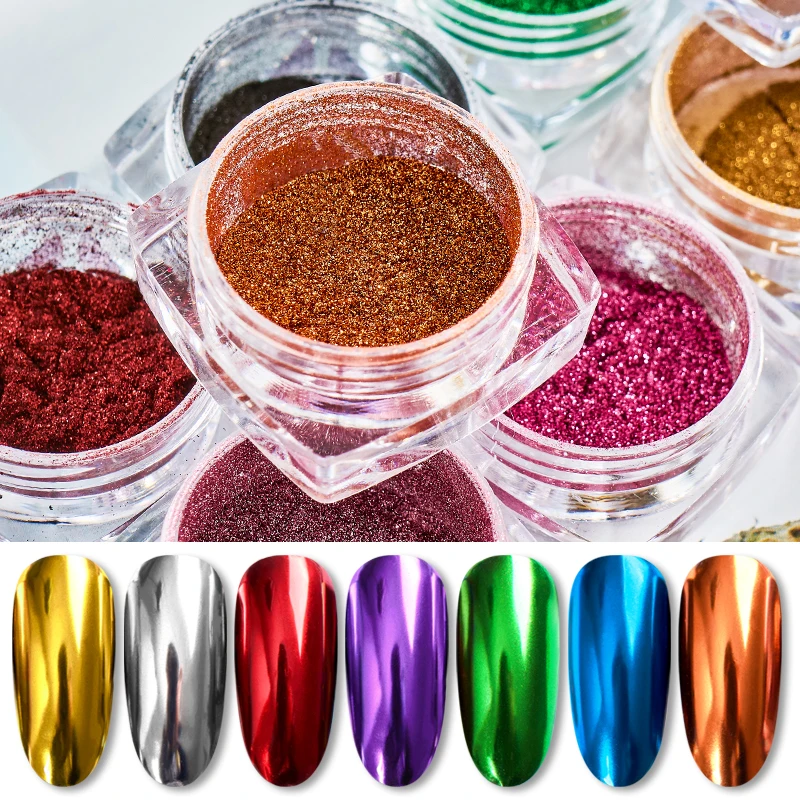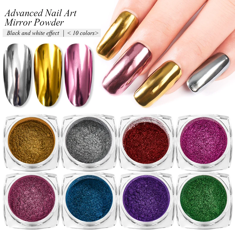 MEET ACROSS зеркальный ногтевой порошок металлический красочный блеск Серебряный Золотой хромированный блеск для дизайна ногтей пигментная Пыль для дизайна ногтей