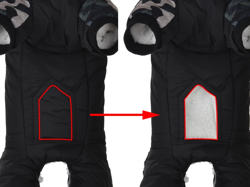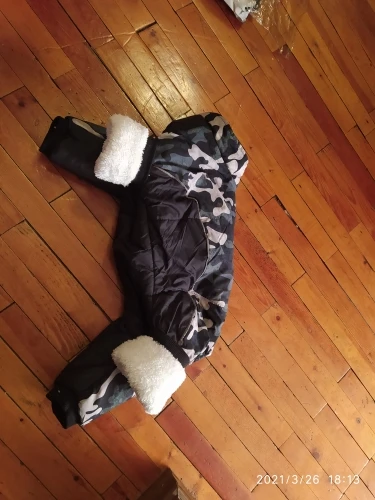 Замечательный комбез, очень тёплый, пузико закрыто. Брала на девочку Джек Рассел.