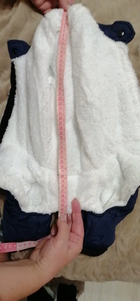 Брали для француза 12 кг и от шеи до хвоста 50 см 2ХХL. По телу сел идеально,а вот рукава все равно оказались длиннее-трутся по земле. Приходится подворачивать,а так можно мех испачкать. На спине липучка скорее всего ненадолго. Для хозяйства выделена область строчкой,но все равно пришлось вырезать этот кусок и подшить края,потому что мех начнёт линять. В общем товар качественного вида,очень тёплый,но для собак покрупнее в лапах и теле,наверное