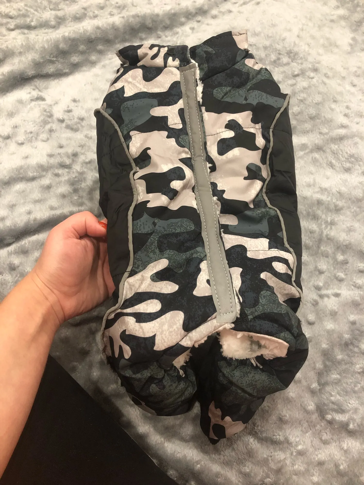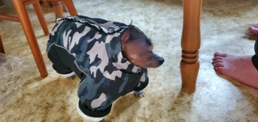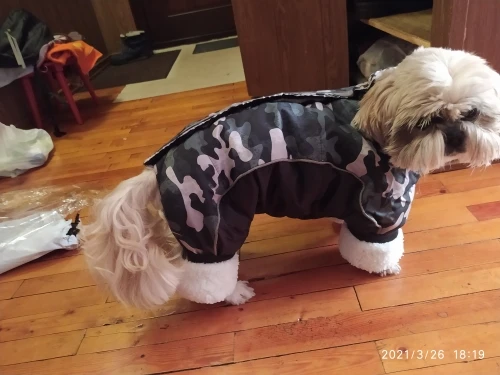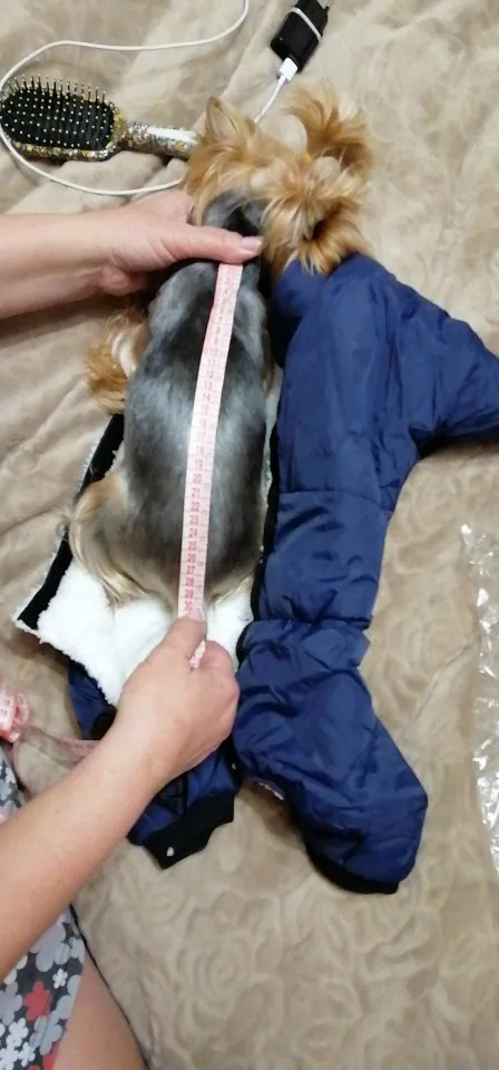 Комбез хороший, тёплый, сшит качественно. Не угадала с размером. На собаку 6 кг, рост в холке 37 см, спина 36 см, обхват груди 40 см 2xl оказался велик в объёме. Заказала ещё на размер меньше.