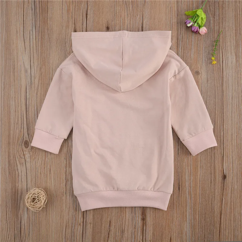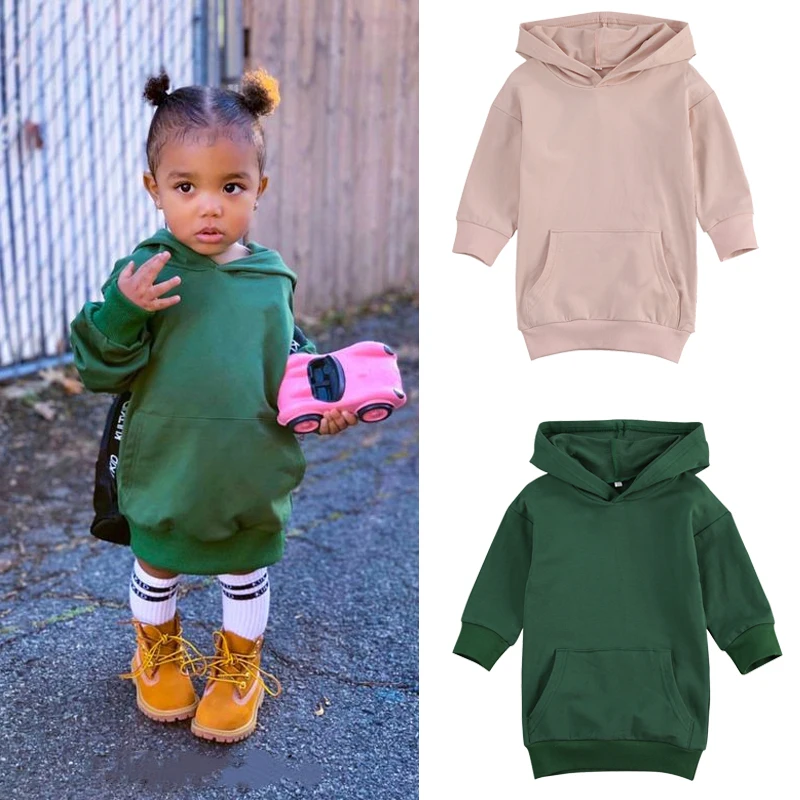 Осенне-зимнее платье-свитер с длинными рукавами для маленьких девочек однотонное платье-пуловер с капюшоном повседневные топы для детей