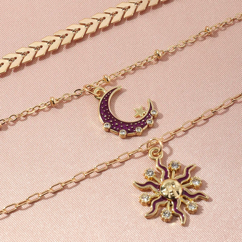 Винтажные очаровательные небесные изысканные ожерелья от Солнца и Луны для женщин, богемное ювелирное изделие, многослойная цепочка для пары, колье для женщин