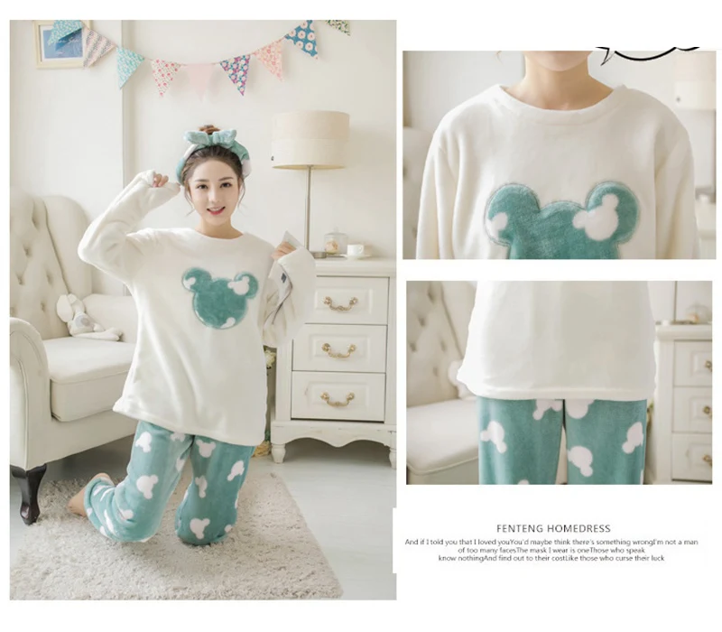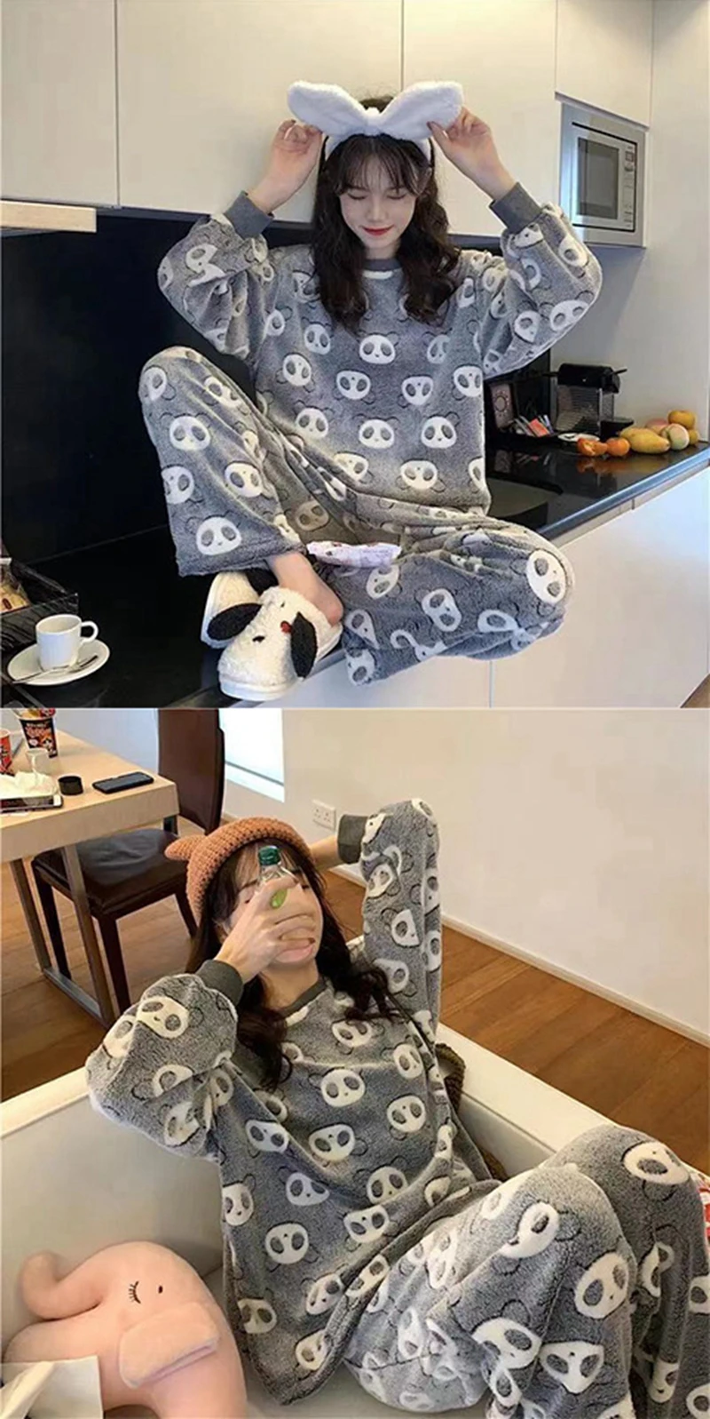 Розовая Фланелевая Пижама для женщин, зимняя одежда для отдыха, одежда для сна из 2 предметов, Женская милая Пижама с изображением растений и котов для девочек-подростков