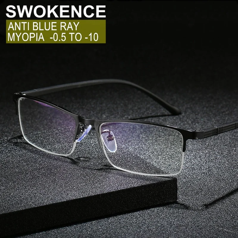 Очки SWOKENCE для близорукости для мужчин и женщин, защита от сисветильник, от-0,5 до-10, при близорукости, в металлической оправе, под заказ, F040