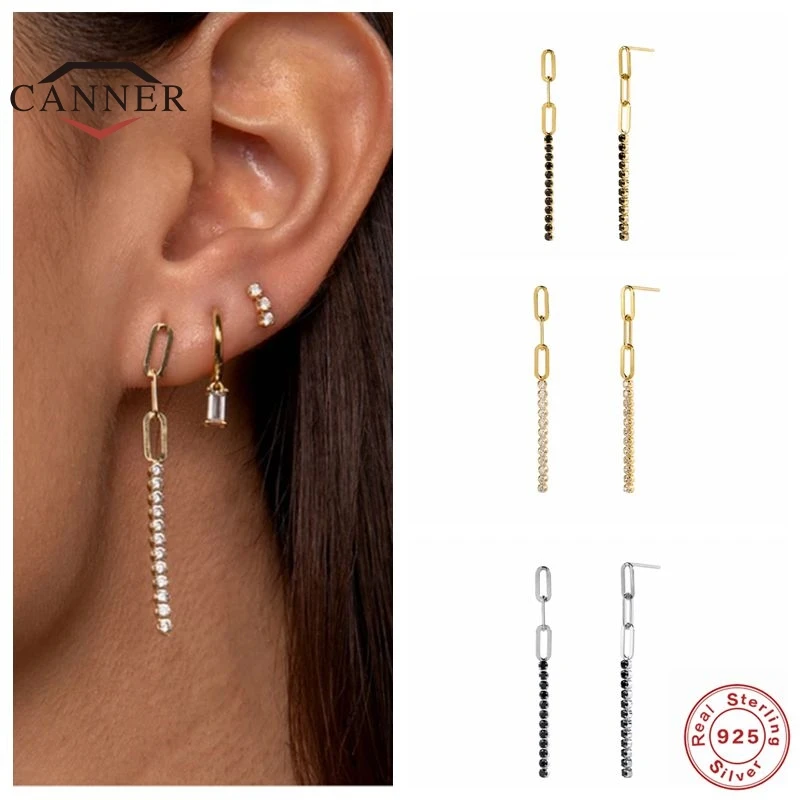 Женские длинные серьги-гвоздики CANNER из настоящего серебра 925 пробы с фианитом, серьги для пирсинга, ювелирные изделия из серебра 925 пробы