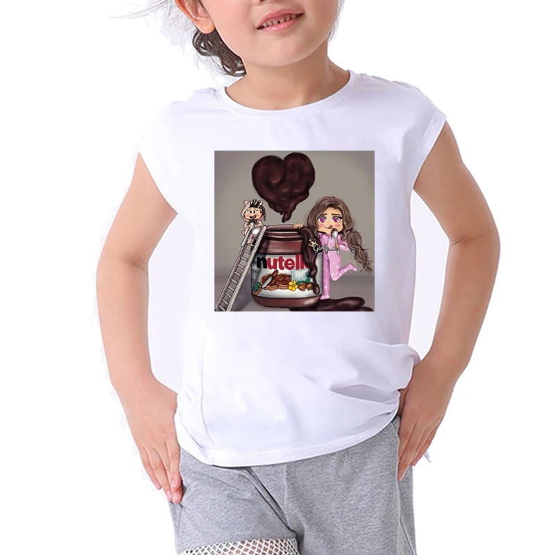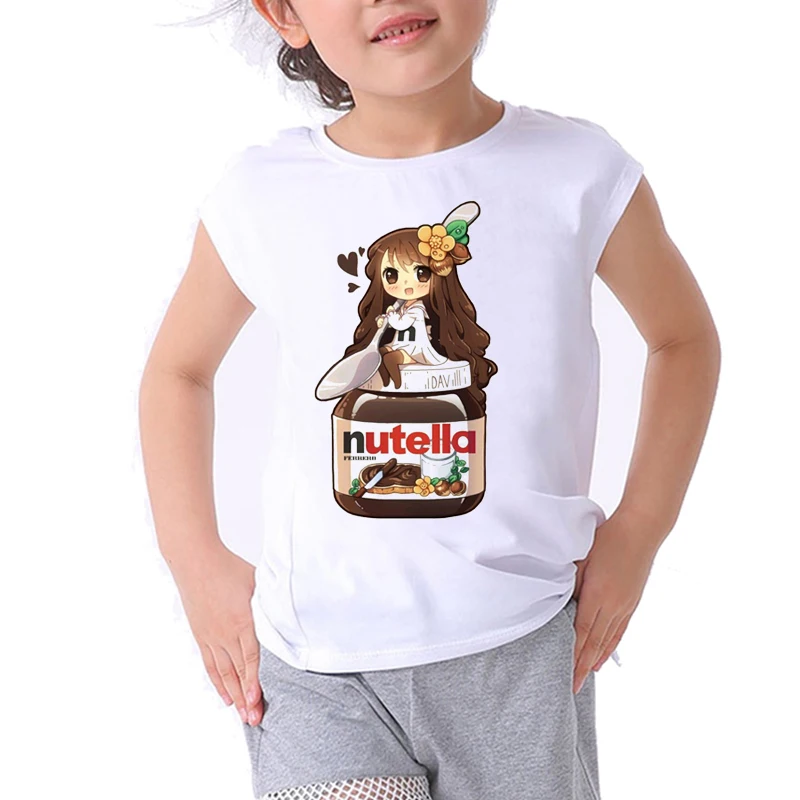 Милая футболка для девочек, детская одежда nutella, футболка для девочек с милым мультипликационным принтом, Забавная детская одежда для мальчиков