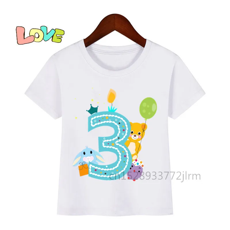 Футболка для мальчиков и девочек 3 лет, детские футболки с принтом в виде цифр на день рождения, 3, Детская забавная футболка Kawaii I Am 3, детские топы