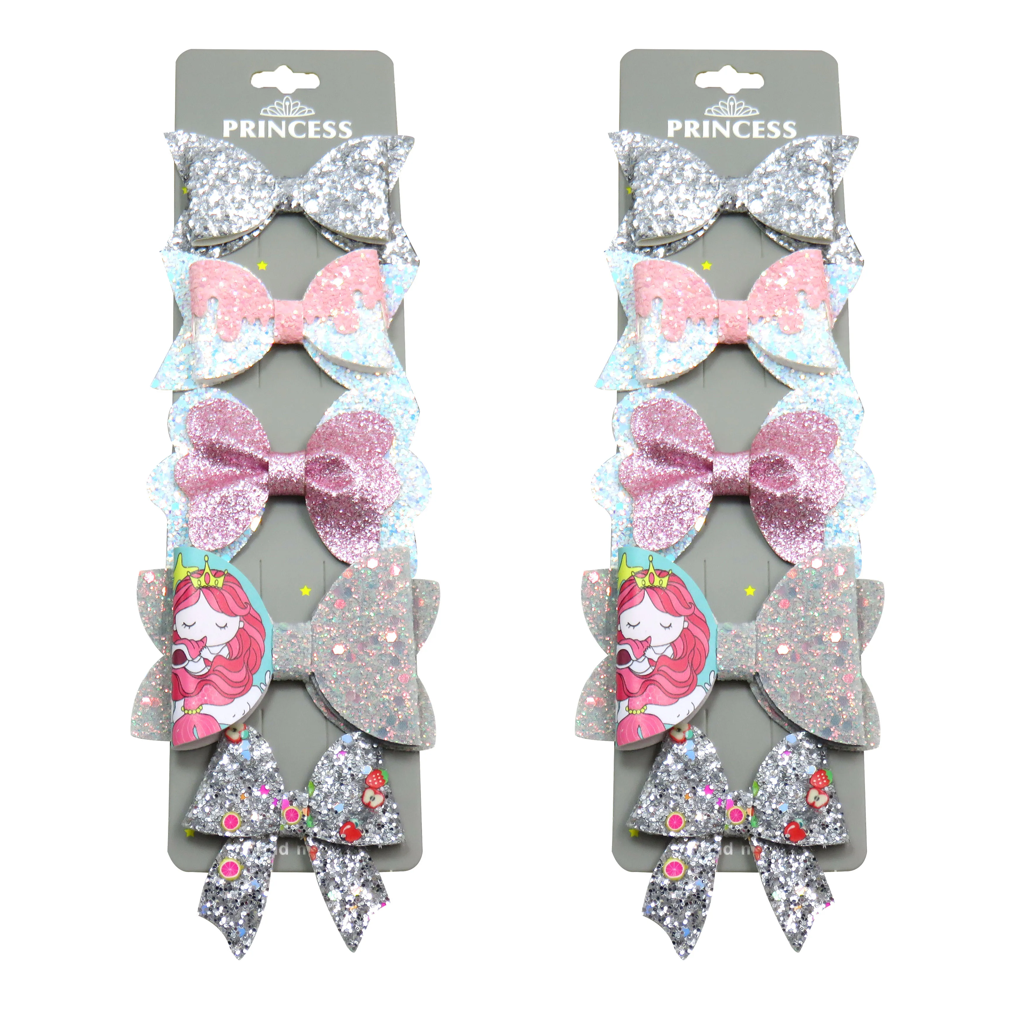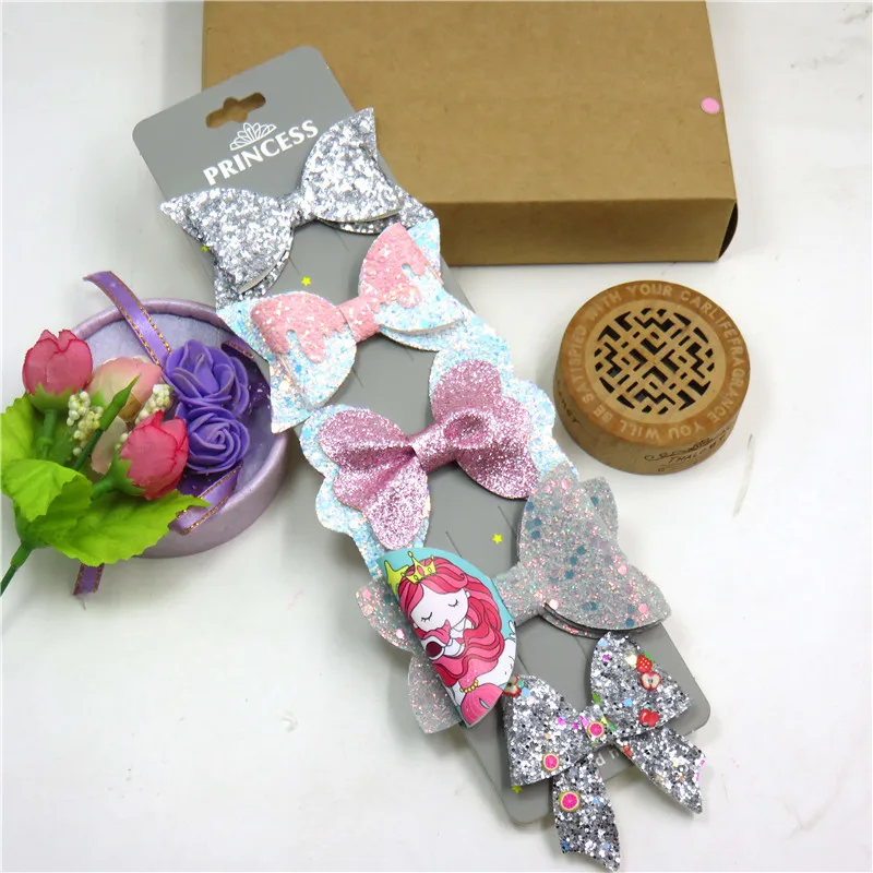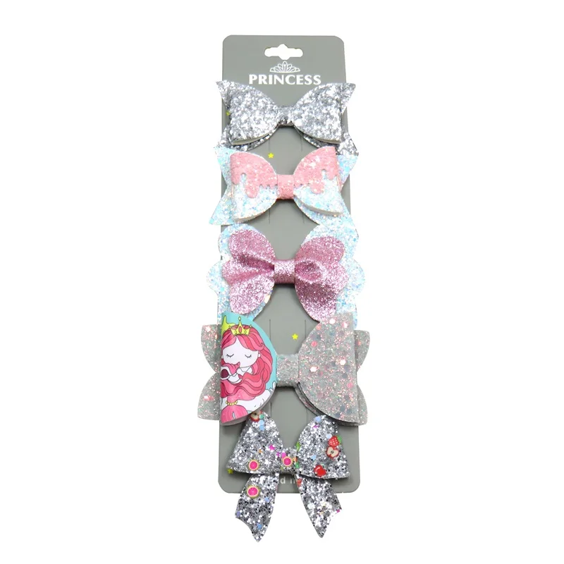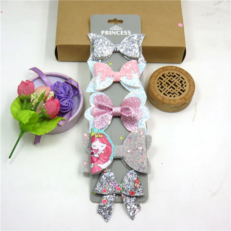 5 шт.компл., Милая блестящая серая детская заколка для девочек, кожаный бант, Детский галстук-бабочка, креативные шпильки ручной работы, аксессуары для волос для детей, новинка