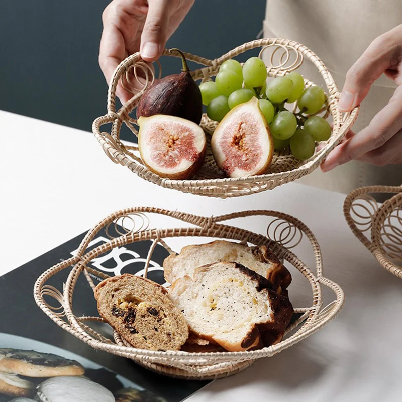 Плетеный поднос для хранения из ротанга, в форме лепестков, для еды, фруктов, хлеба, завтрака, чая, сервировка десерта, тарелка для обеда