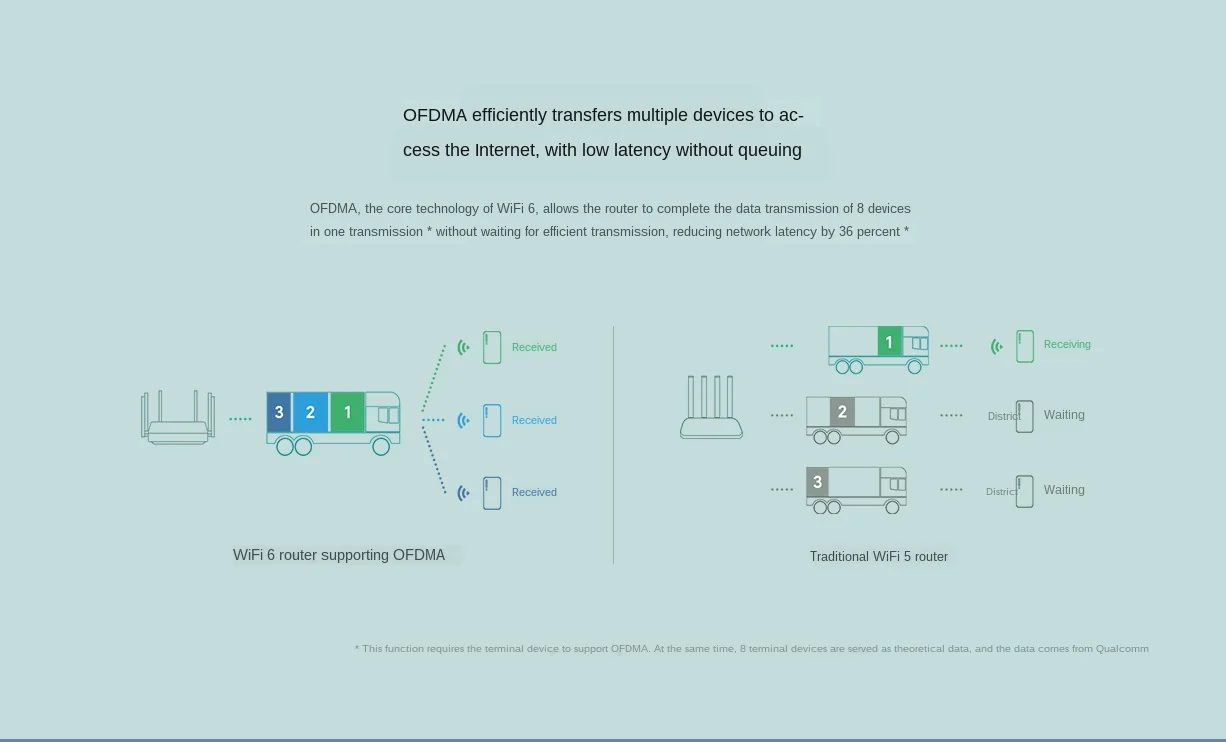 2,4G Wi-Fi: 2 × 2 (поддерживает протокол IEEE 802.11ax, теоретическая максимальная скорость может достигать 574 Мбит/с)