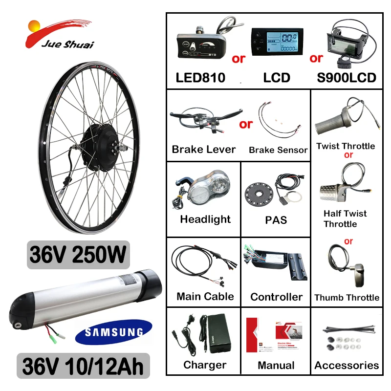 Набор для электровелосипеда, литиевый аккумулятор для горного велосипеда Samsung, 2026 дюймов, 36 В, Ач, переднее моторное колесо