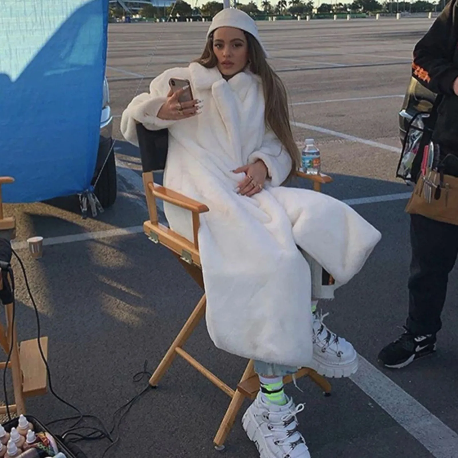 Зимнее женское пальто из искусственного кроличьего меха, Удлиненное...
