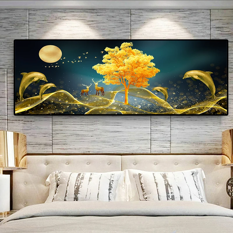 Картина на холсте, с изображением дельфина, пейзаж с оленем, без рамки
