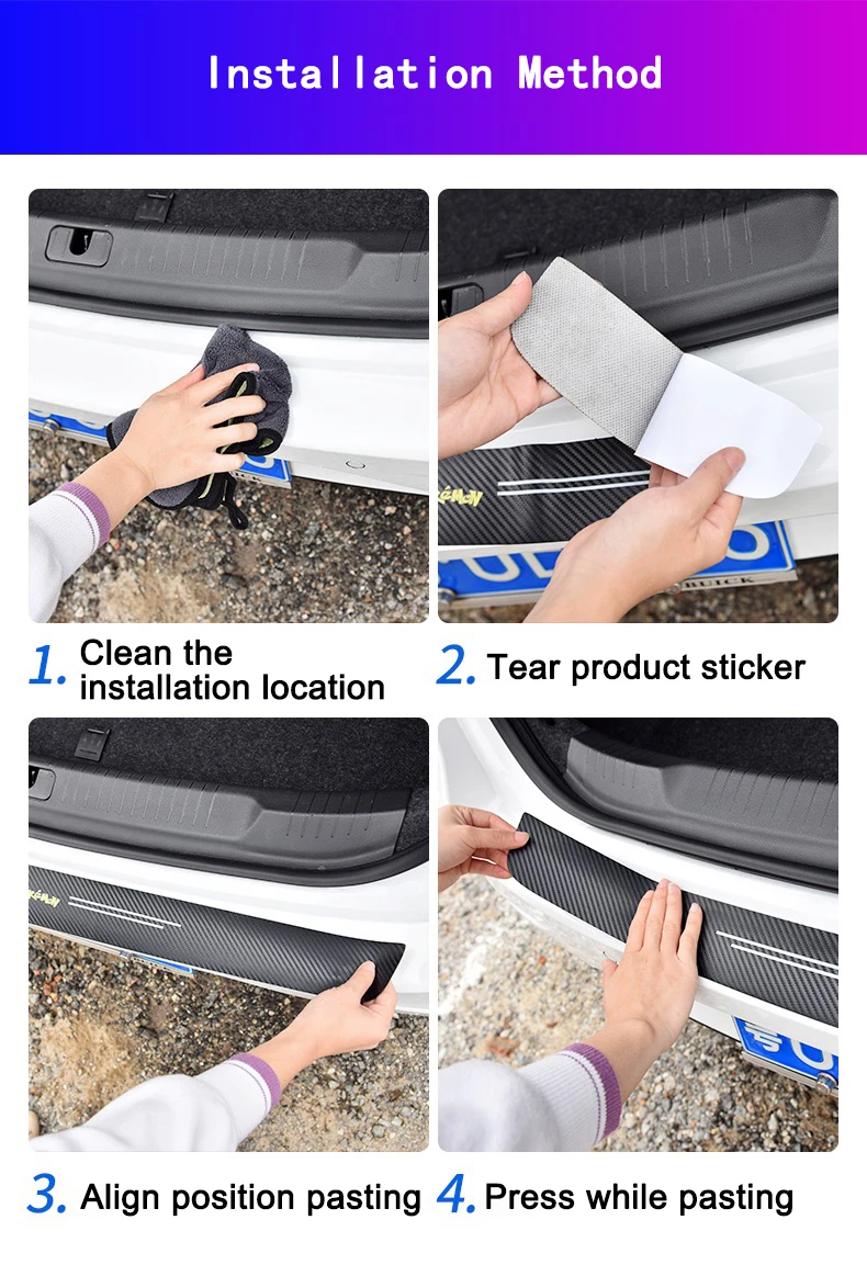 -Материал: кожа из углеродного волокна -Посылка: 1 шт. наклейки на задний бампер автомобиля -Размер: 90*11 см