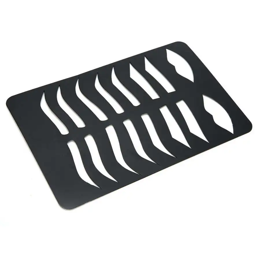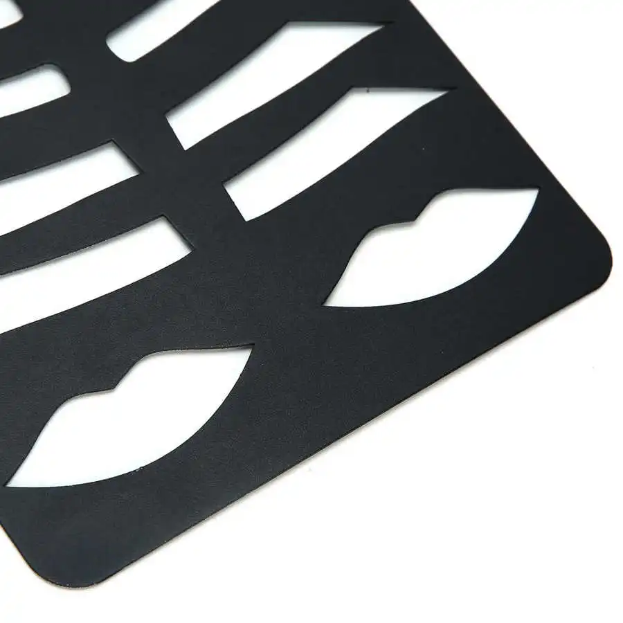 1. 7 форм бровей и 1 форма губ могут быть разработаны, подходят для людей с различными формами лица, доступны для мужчин и женщин.2. Может использоваться в качестве линейки для татуировок бровей и дизайна губ, а также может использоваться для начинающих для изучения бровей или дизайна красивых губ.3. Железная конструкция, может быть многоразового использования, легко захватывается и очень прост в эксплуатации.4. Вы можете нарисовать красивые брови за короткое время, не тратя много времени на макияж бровей.5. Шаблоны для бровей помогут вам придать форму бровям, чтобы вы могли получить пару естественных симметричных бровей.