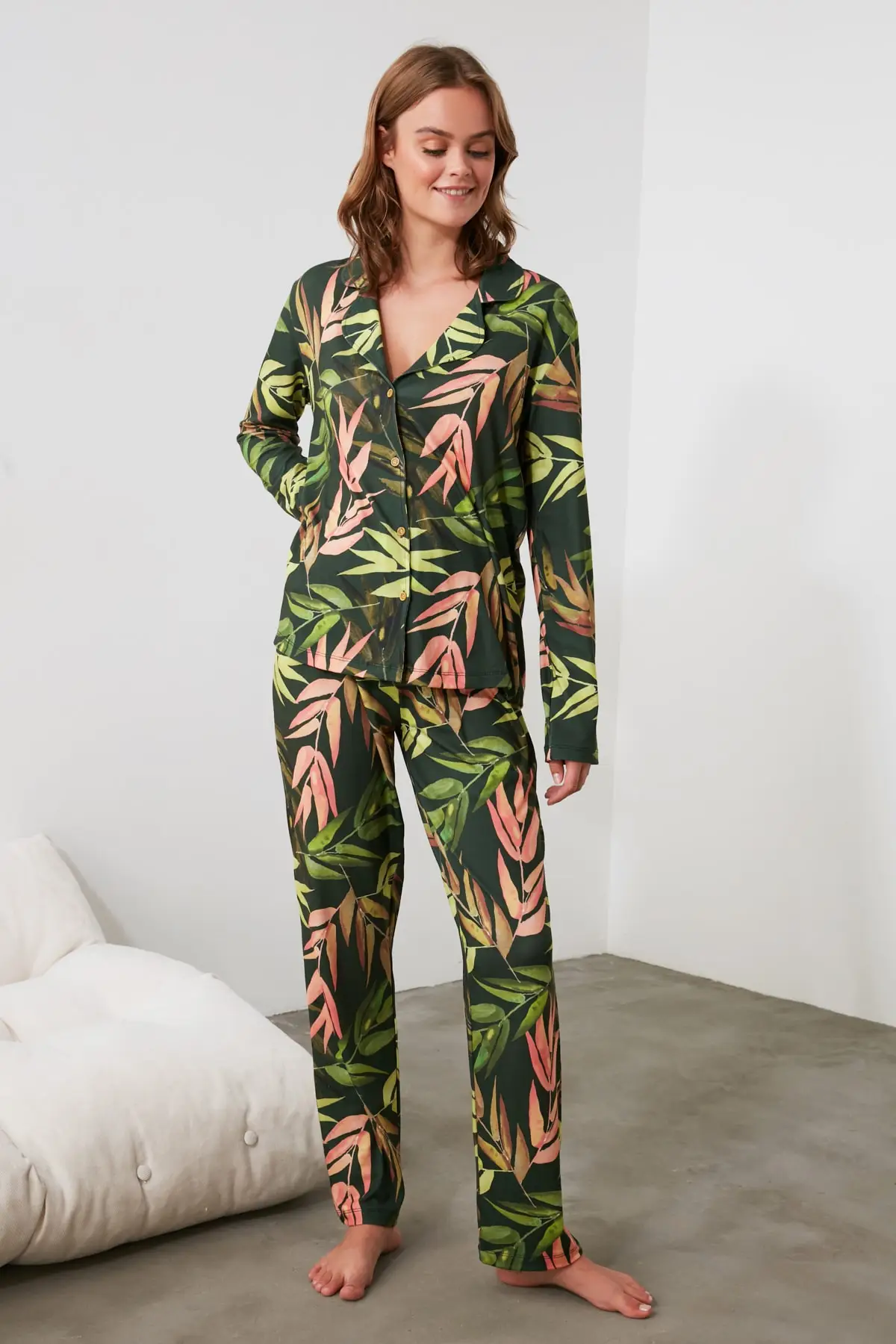 Набор С Рисунком Листьев трикотажная пижама, THMAW21PT0490