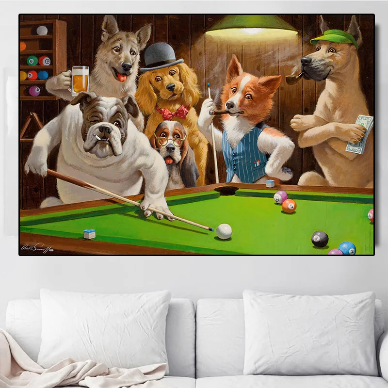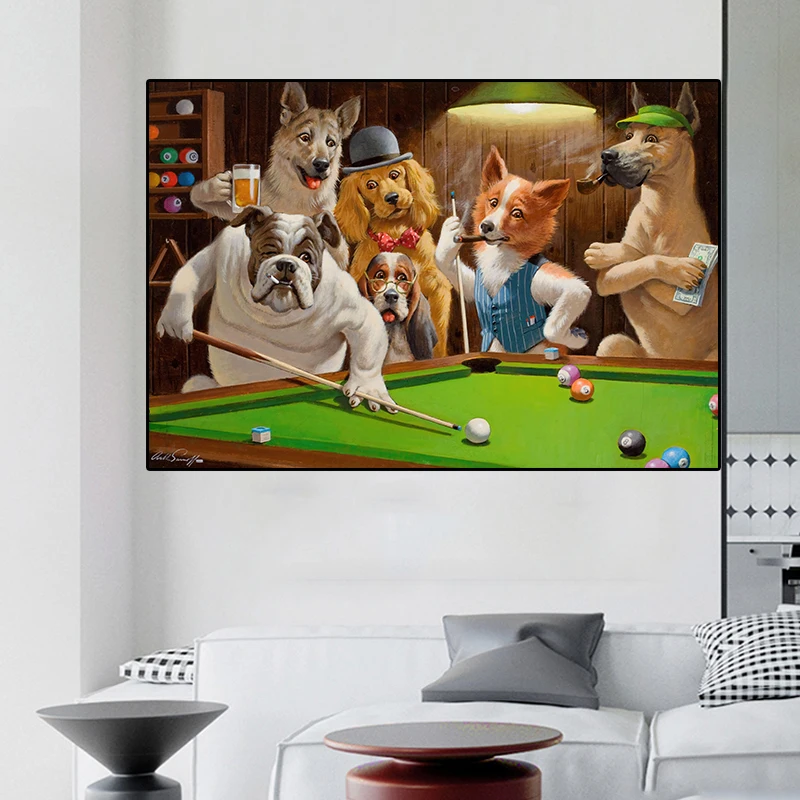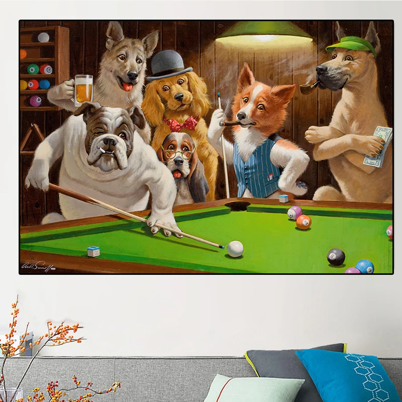 HD рисунок художественной краской, смешная собака Бильярд холст постеры с масляной живописью и принты Семья Гостиная отделки стен