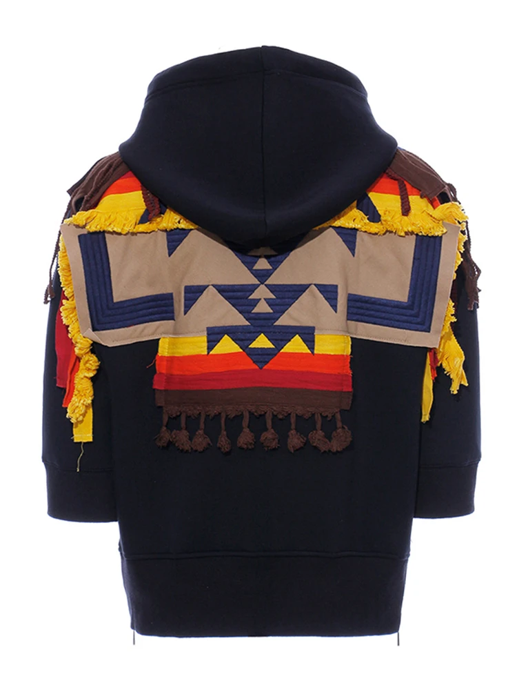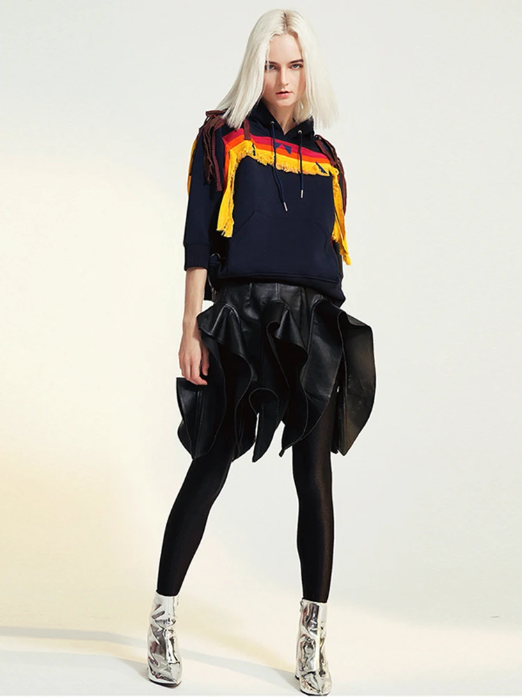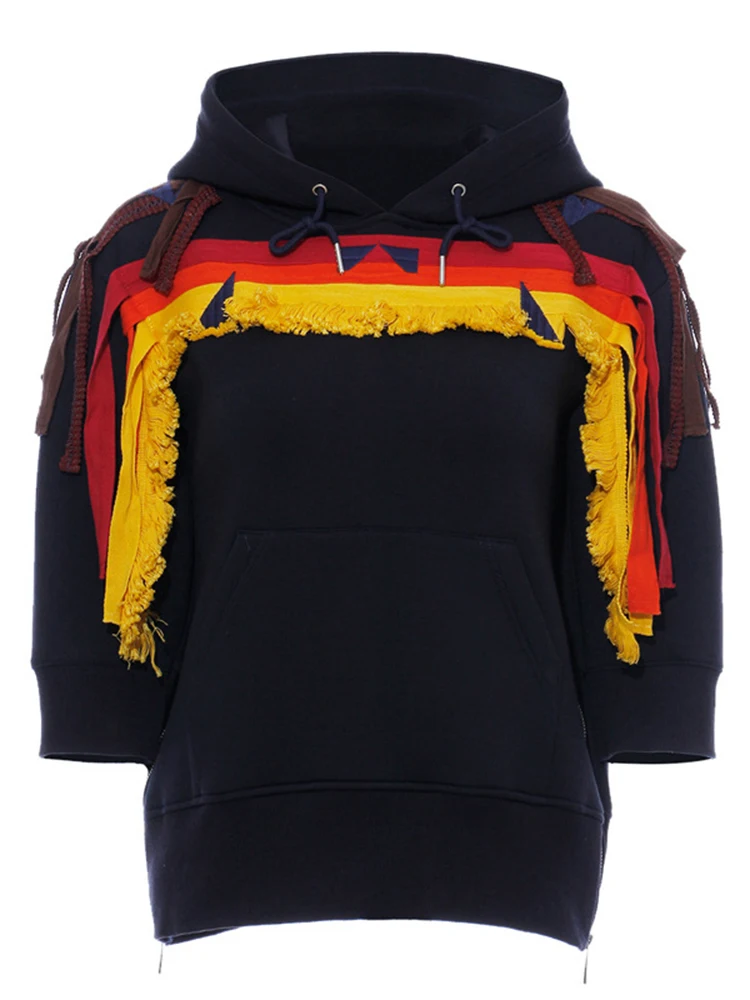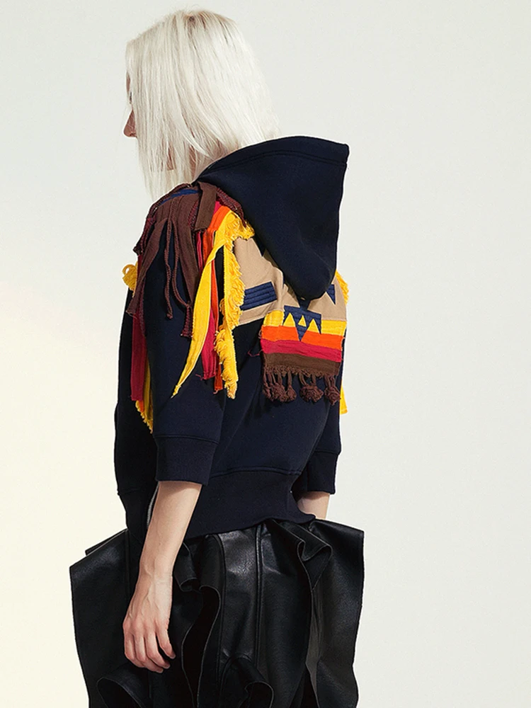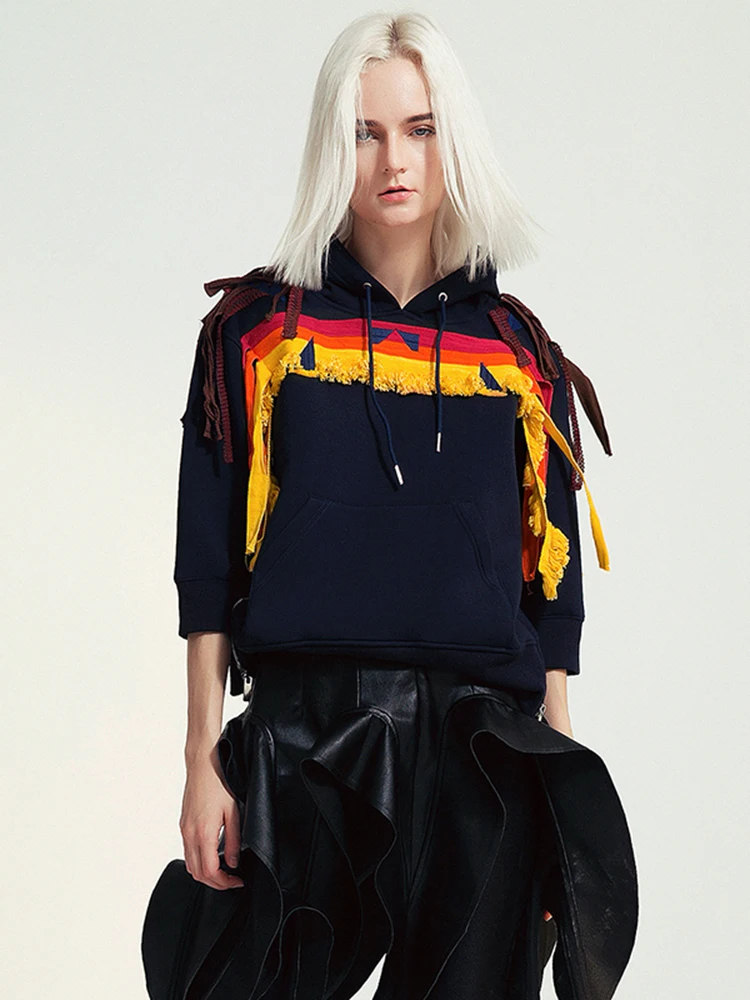 EAM Свободная Толстовка с вышивкой и кисточками, новая Женская толстовка с капюшоном и рукавом до локтя, большой размер, модная весенне-осенняя 2022, 1DC982