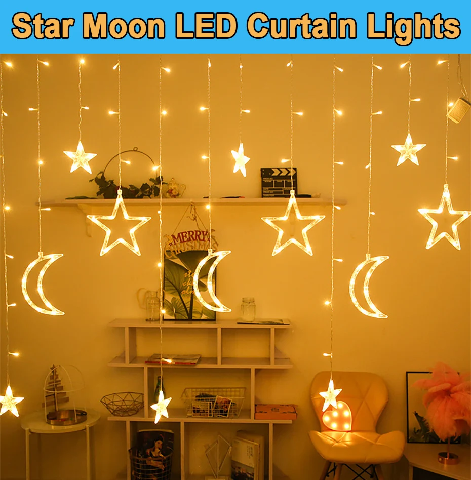 Сказосветильник гирлянда, светодиодная гирлянда, гирлянда-занавеска, Рождественская гирлянсветильник, украшение для дома, улицы, Рамадан