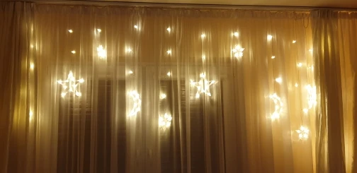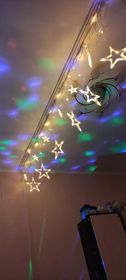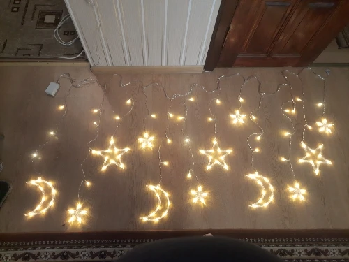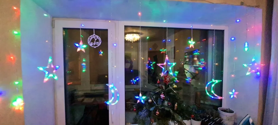 Очень красивая гирлянда. Лампочки яркие, освещают всю комнату. Несколько позиций освещения. Шнур короткий. Доставка 1,5 месяца до Вильнюса. Жаль, что пришла после Рождества, но перед Новым годом.