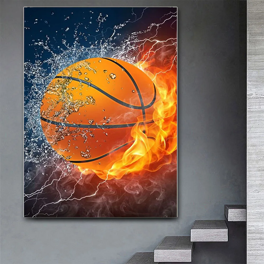 Картина из страз горящий Баскетбол, сделай сам, картина из страз, вышивка крестиком, стразы, мозаика