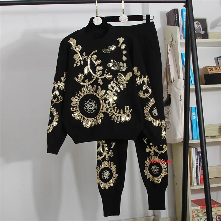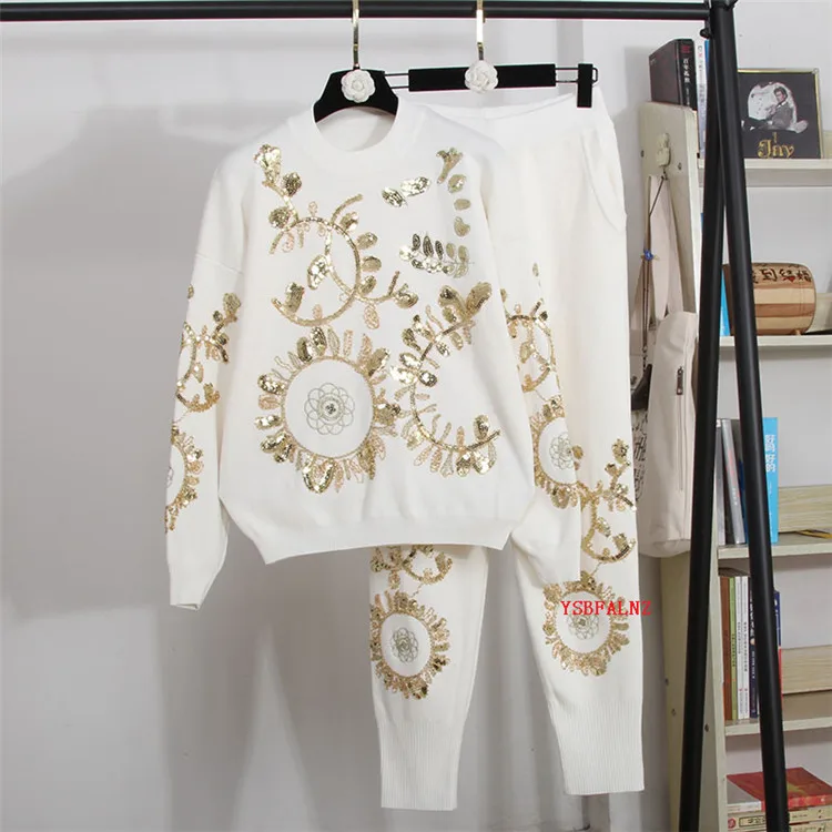 Новинка, высококачественные вязаные костюмы с блестками и бисером, ...