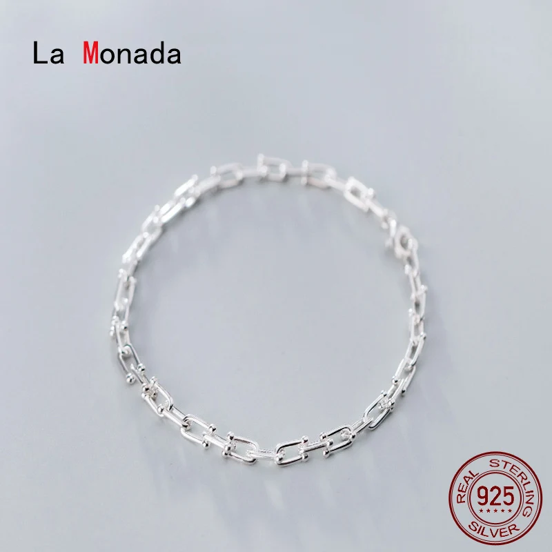 Бренд: La Monada Название продукта: браслет в стиле минимализма Материал: высококачественный 925 пробы серебристый Длина браслета: 16 см Подарок кому: девочкам; Женщинам, женщинам Посылка: посылка перед отправкой La Monada браслеты для женщин серебро 925 пробы прекрасный красивый серебряный 925 Ювелирный Браслет цепочка на замок женский браслет