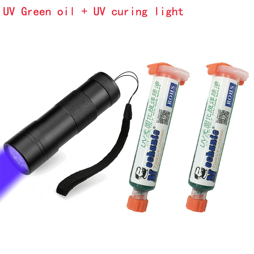 MECHANIC 10 мл зеленая УФ-паяльная маска PCB BGA краска предотвращает коррозионную арку пайки сварочные флюсы масло + 12led УФ-отверждения светильник