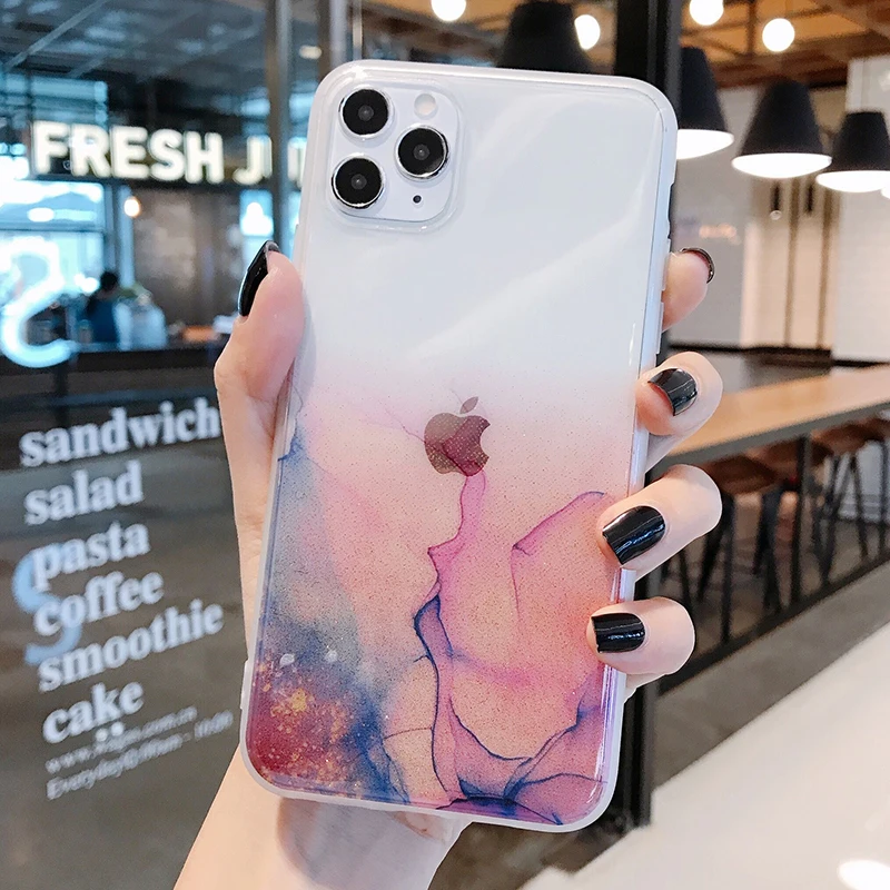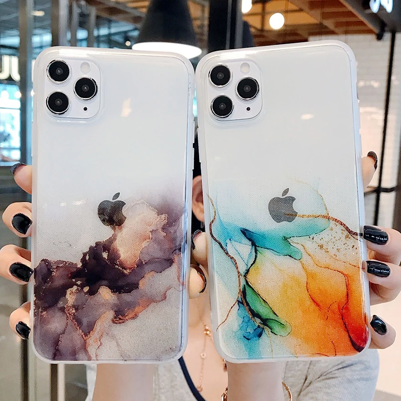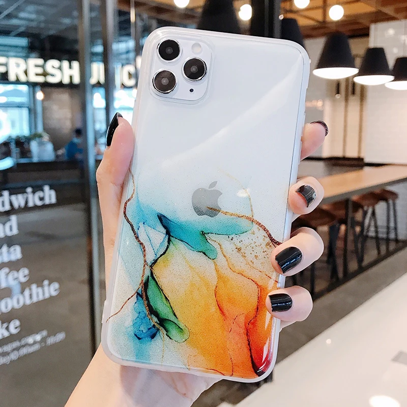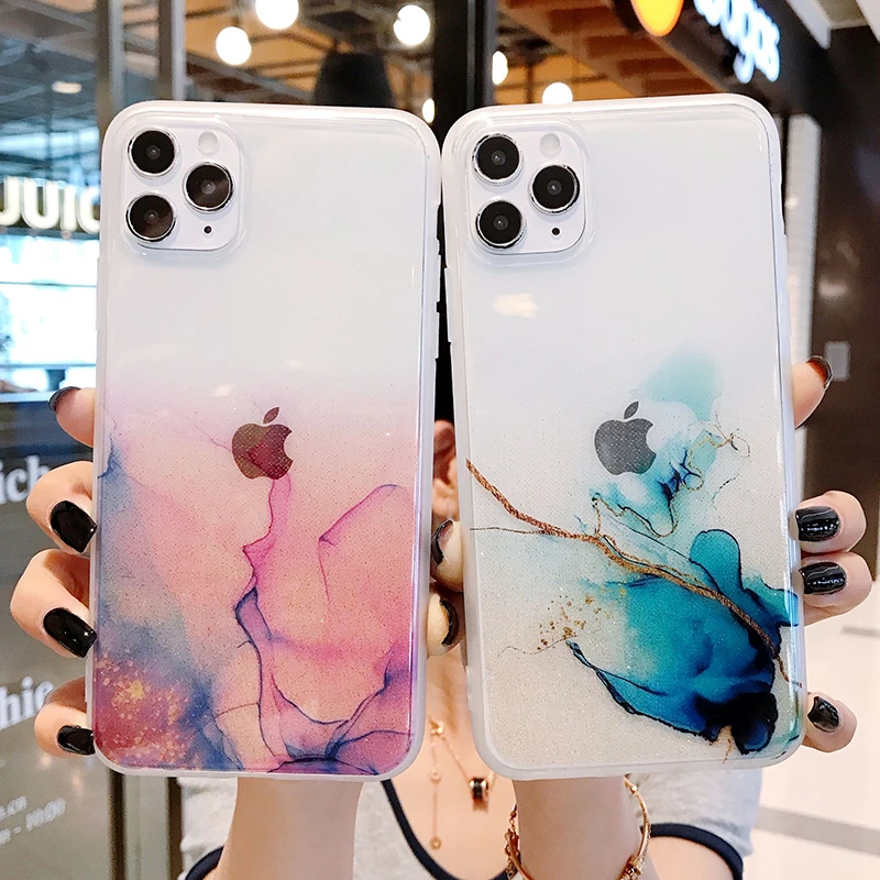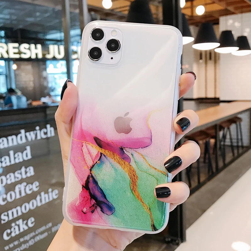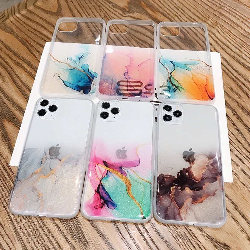 Блестящий винтажный цветной чехол для телефона iPhone 11 12 Pro Max 7 8 Plus X Xs Max XR прозрачный мягкий IMD чехол для задней панели, подарок