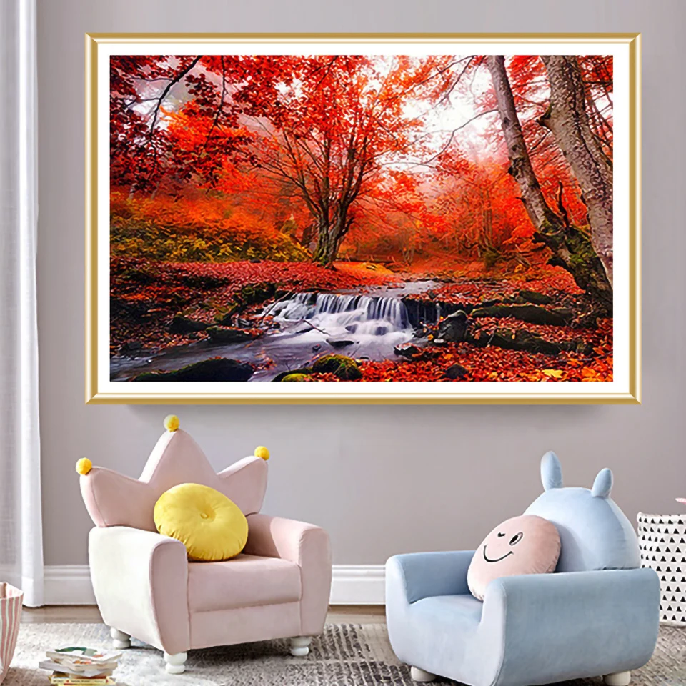 Картина из квадратныхкруглых страз 5D, пейзаж, водопад, вышивка крестиком, украшение сделай сам, подарок, весна, осень, зима