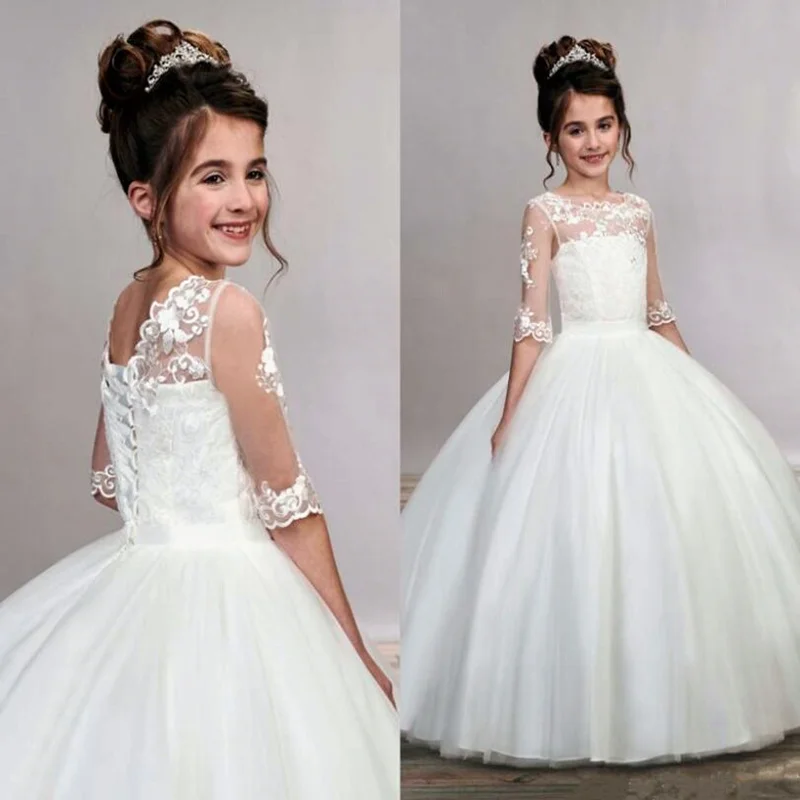 Новое поступление, бальные платья с длинным рукавом для девочек с цветами, женское платье принцессы для первого причастия