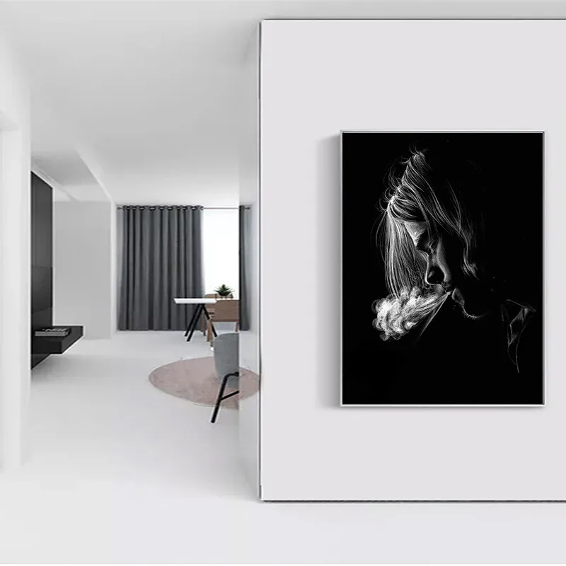 Черно-белая девушка пьет пиво уборная холст картины для гостиной ко...