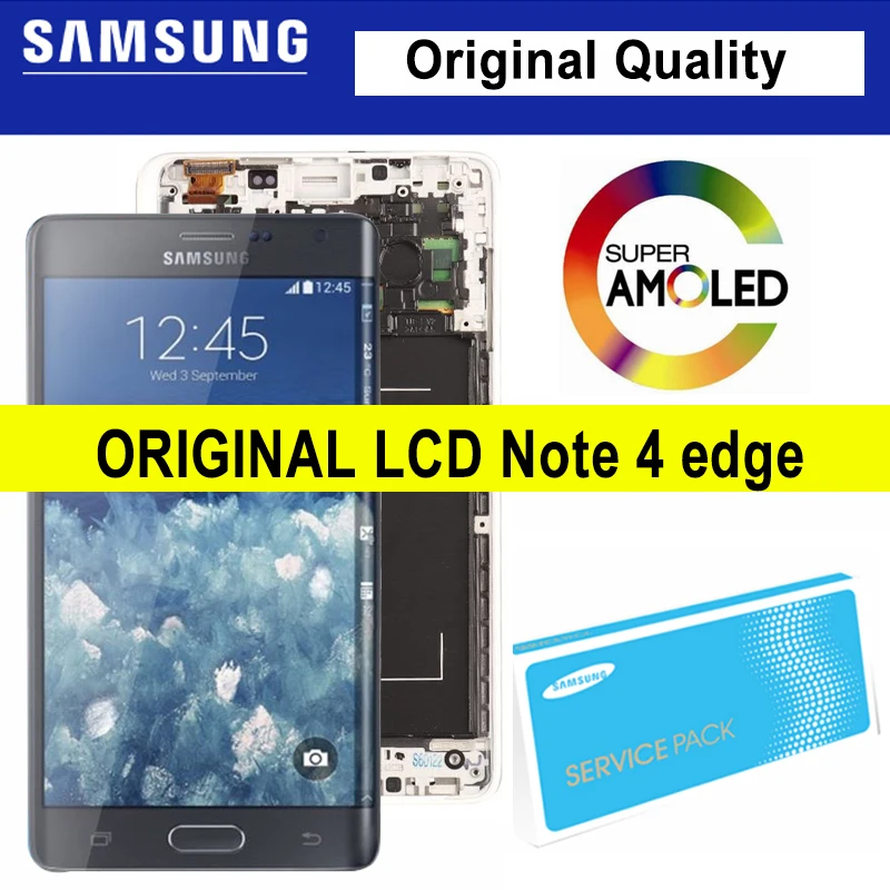 100% Оригинальный 5,6 "AMOLED ЖК-дисплей с рамкой для SAMSUNG Galaxy Note 4 edge N915 N9150 N915F сенсорный экран дигитайзер в сборе