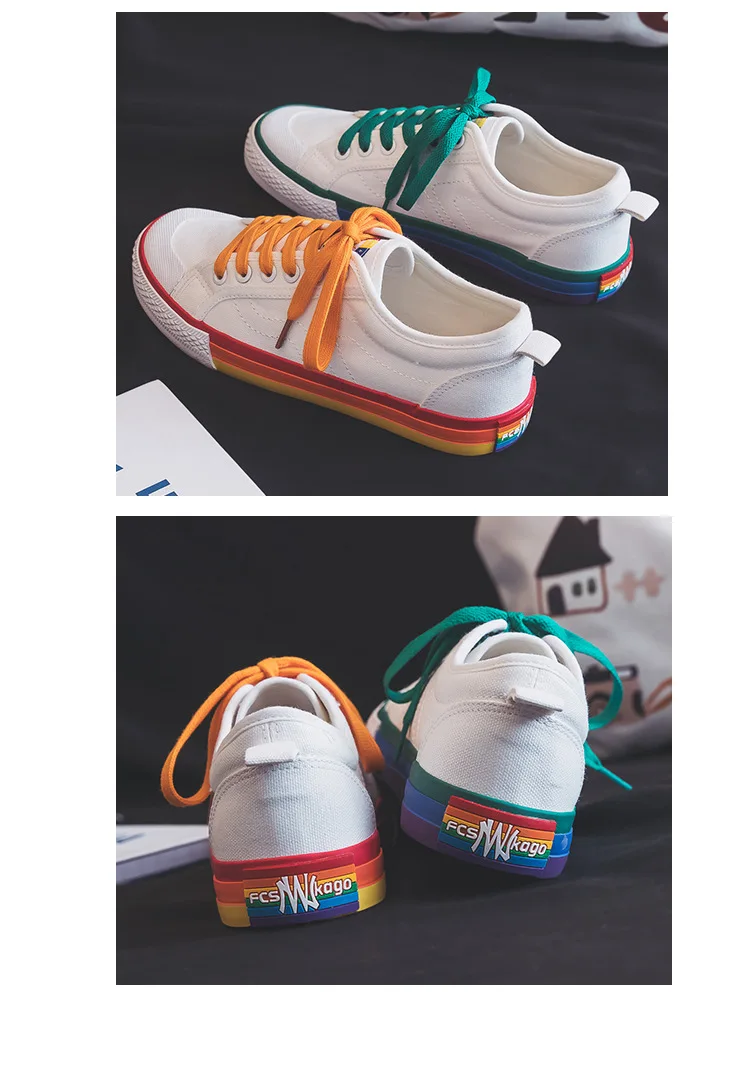 Кеды женские радужные, Вулканизированная подошва, плоская подошва, дышащие, для прогулок и путешествий, повседневные кроссовки, белые