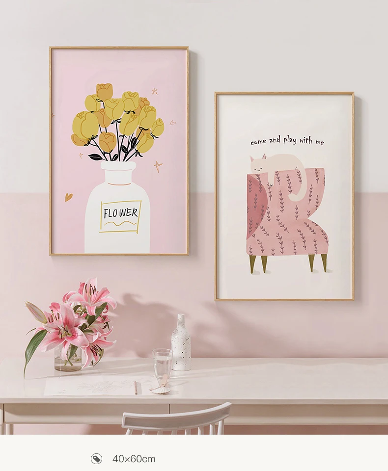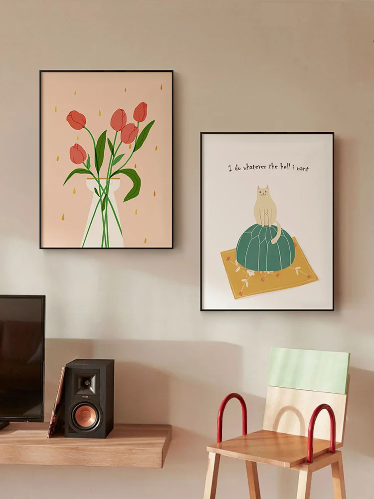 Настенная картина из мультфильма Be Your Cat, скандинавский плакат с свежими цветами, простая иллюстрация для домашний декор гостиной без рамки