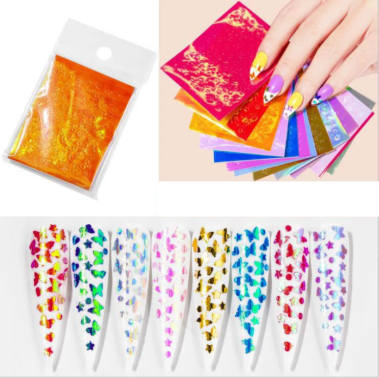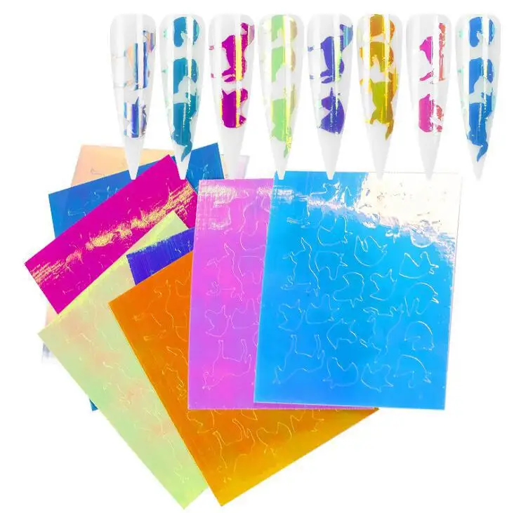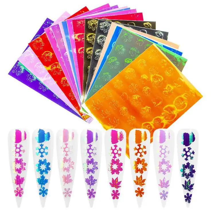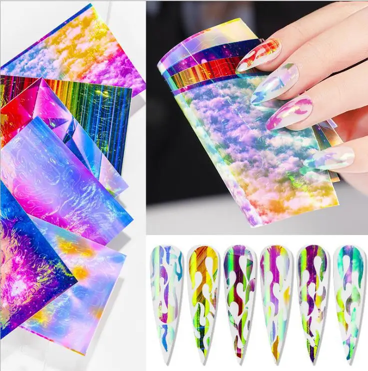 16 шт 3D голографический огненный винил для ногтей стикер s Блеск лазерное Пламя Дизайн ногтей Фольга переводная наклейка деколь декорации набор