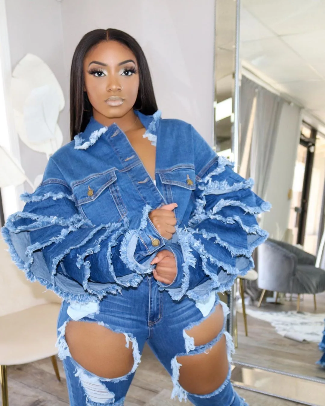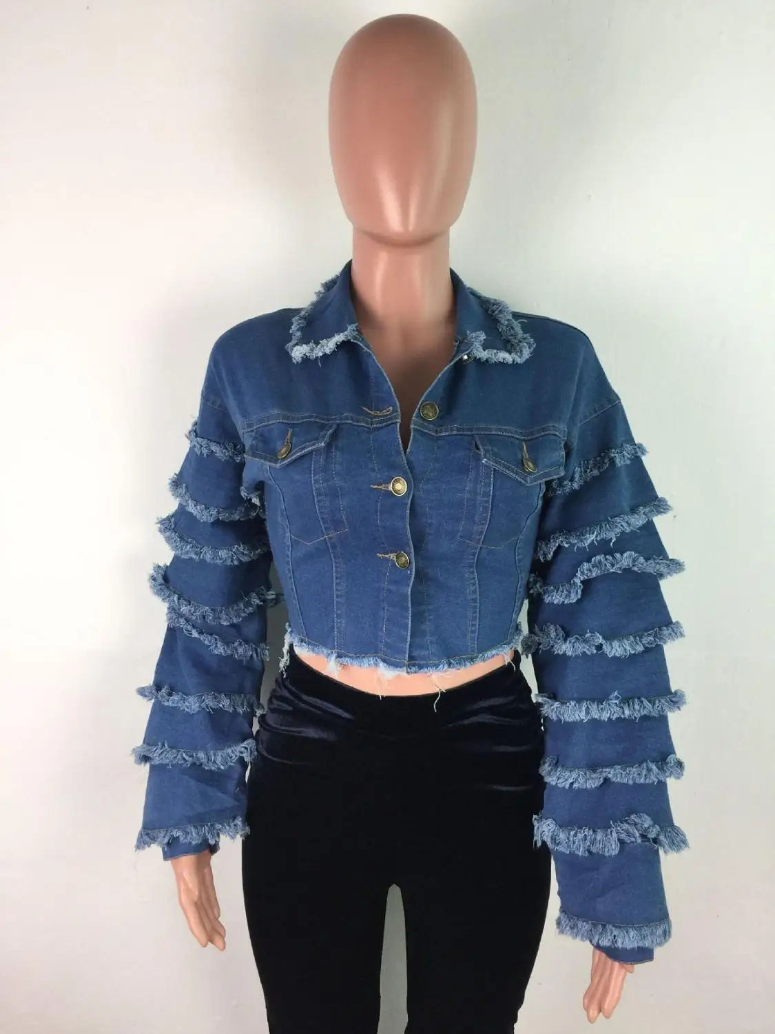 JRRY повседневное женское джинсовое пальто с расклешенными рукавами, пуговицами и карманами, джинсовая куртка с отложным воротником, верхняя одежда