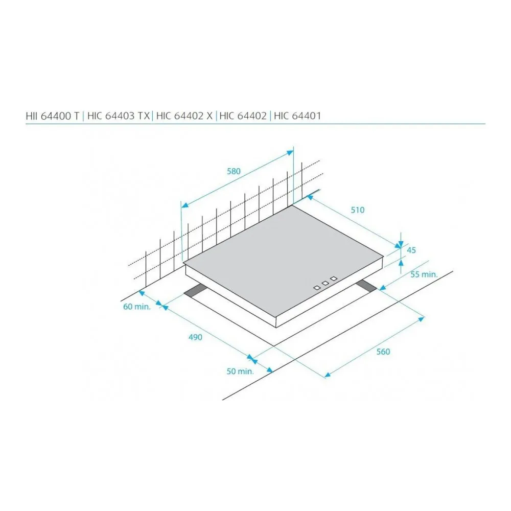 Глубина варочной поверхности51 см