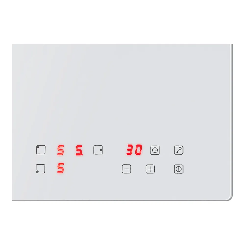 Панель конфорок стеклокерамика Индикация остаточного тепла да Конфорок индукционных 3 Глубина варочной поверхности 52 см Таймер да Высота варочной поверхности 5.2 см Гарантия 12 мес Всего конфорок 3 Ширина варочной поверхности 49 см Цвет панели конфорок черный \ белый Дизайн Домино нет Страна производитель Китай Размер ниши для встраивания (ШхГ) 42х49 см Переключатели сенсорныеВНЕШНИЙ ВИД ТОВАРА