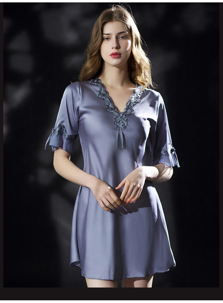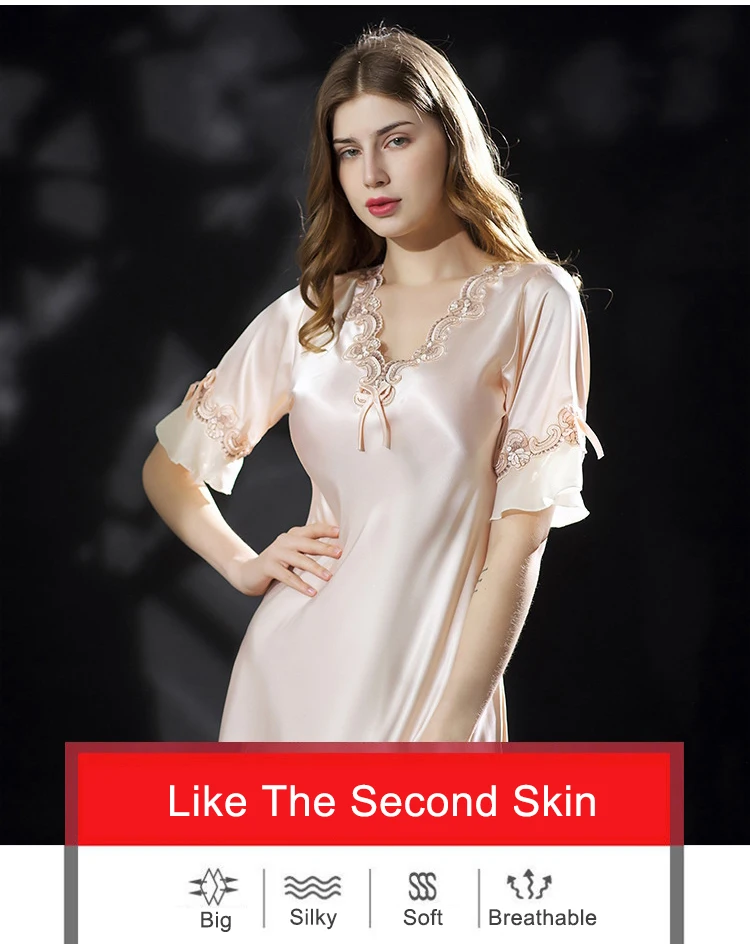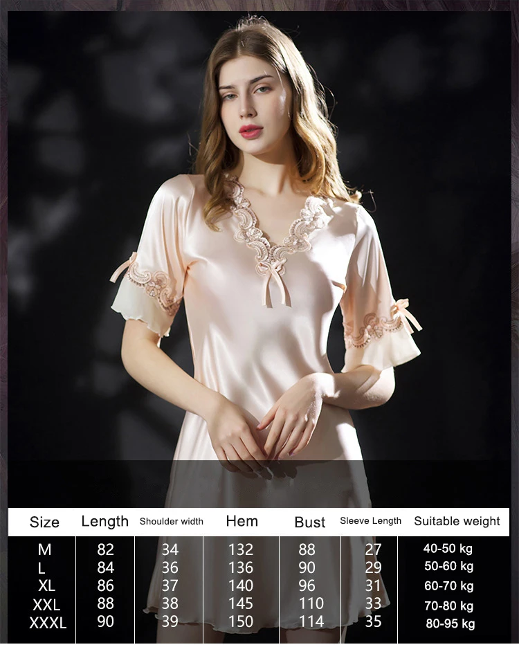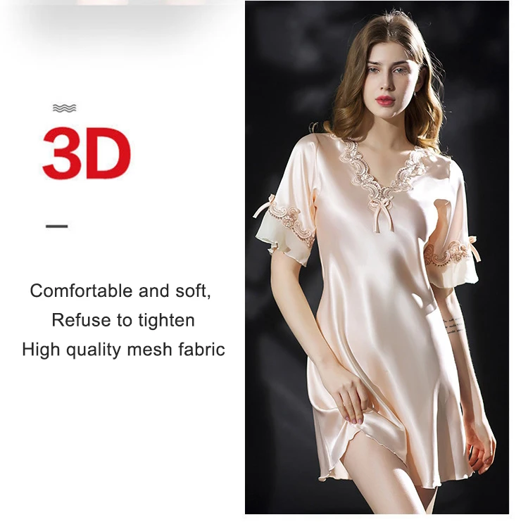 Женская шелковая ночная рубашка, кружевная ночная рубашка большого размера из тонкого шелковистого атласа, летнее женское нижнее белье, размера плюс размер, ночные рубашки для сна