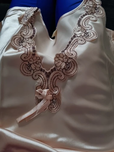 Жаль, что я заказал слишком большой размер. Поэтому я рекомендовал еще 1 размер меньше. В противном случае эта ночная рубашка красивая, а ткань мягкая и шелковистая.