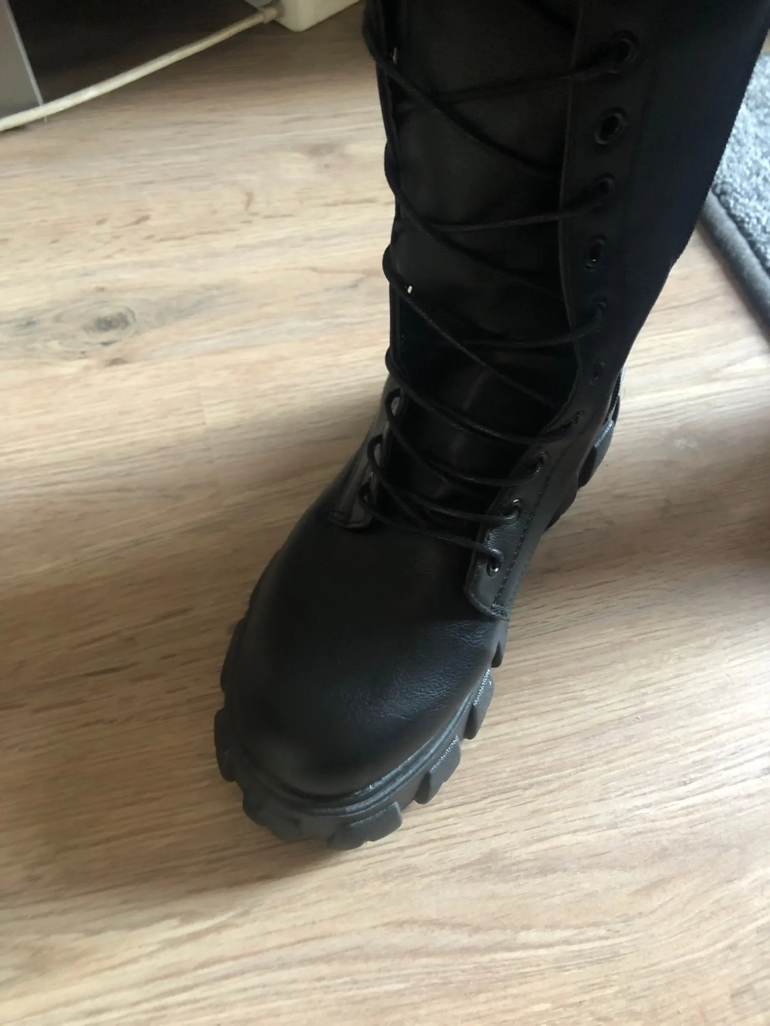 Я заказал его 02 и получил сегодня, я очень доволен этим продуктом, шнурки длинные, а верх обуви достигает половины моего колена, Я рекомендую, несмотря на пятно клея, но оно того стоит